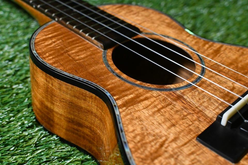 ボディには良質なハワイアンコア材を、指板やブリッジにはエボニーを使用しています。