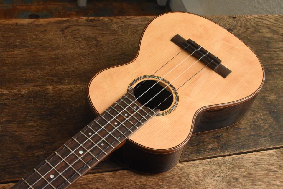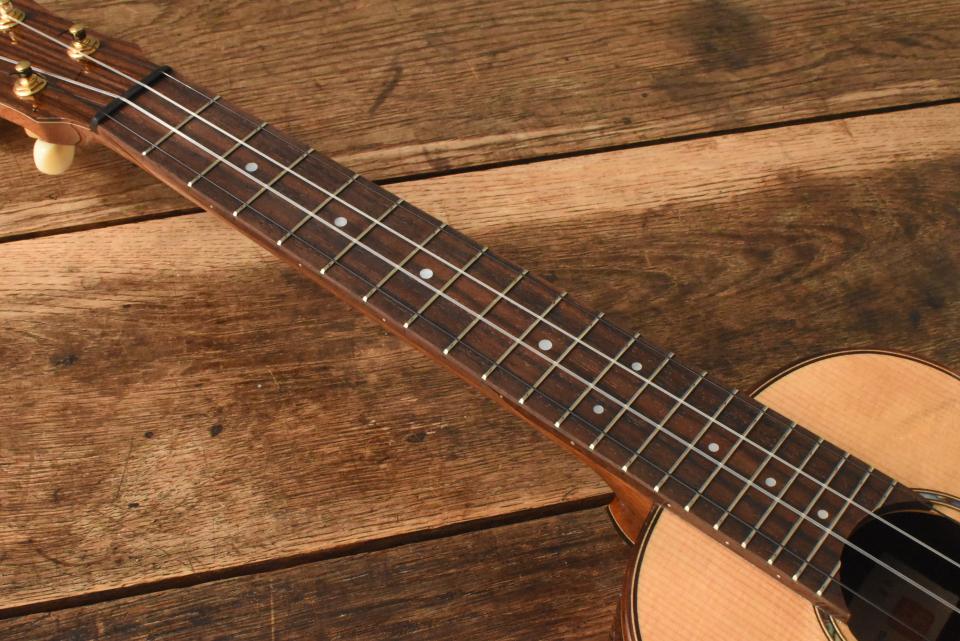 スプルース×ローズのギターライクな材構成ですが、柔らかな深みと爽快な抜けの良さが特徴の素晴らしいウクレレサウンドが特徴です。サイズ感以上の豊かな音量とサステインも魅力です。ソロウクレレはもちろん、歌の伴奏にも非常にオススメ。軽い抱え心地と弾きやすさも本器の魅力です。