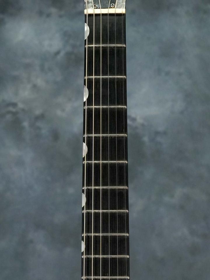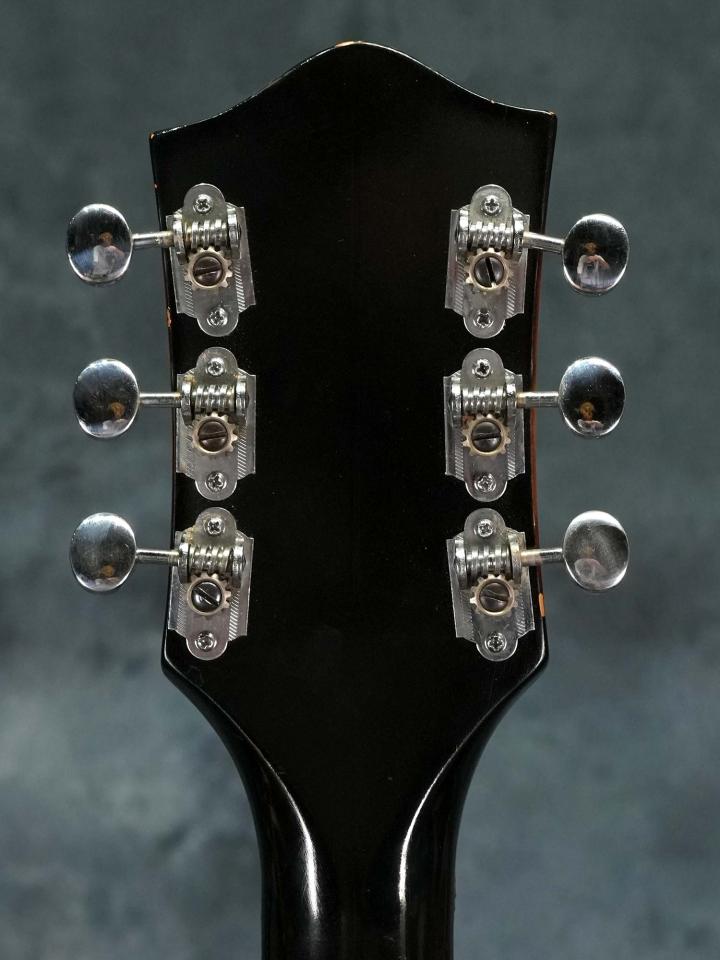 ネックはほぼストレートの丁度良い状態でトラスロッドの効きも良好、ネックジョイントにトラブルが起きやすいGretschですがジョイントの浮きや元起きも無くサドルの調整範囲内で適正な弦高、オリジナルと思われる細身で低いフレットはすり合わせにより全体的に高さの残りは少ないものの、気になるようなビビりや音詰まりも無く演奏性は良好です。