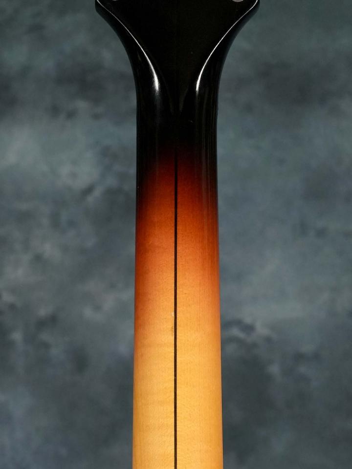 ヘッドストックのナット付近とネックサイドの6弦側ナット付近に木部の割れ補修とタッチアップ跡があるものの大きく割れたような形跡は有りません。ヘッド~ネック~ボディに掛けて全体的にウェザーチェックが入っており、所々塗装剥がれを伴うダメージはあるものの、極端に大きなダメージは無く年式を考えればとても綺麗な状態を保っています。