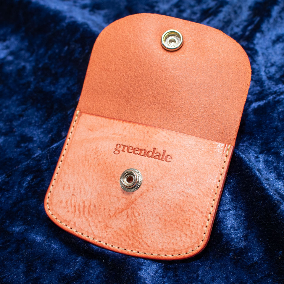 国産ハンドメイドストラップブランドgreendaleによる、ストラップ製作の際に生じる端材を利用した、エコな革製ピックケース。