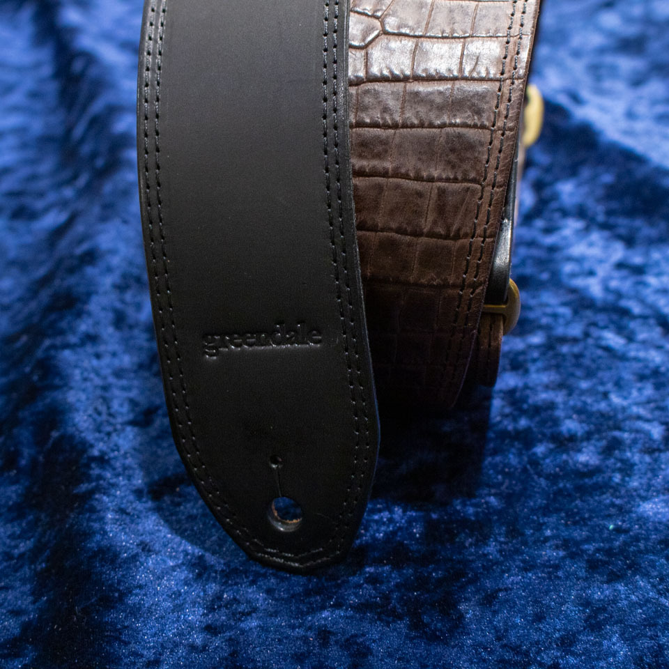 国産ハンドメイドストラップgreendale。800(オットチェント)社のToscano Classico T.moroを使用し、クロコ型押ししたクールなモデルです。エイジングの楽しみも味わえます。