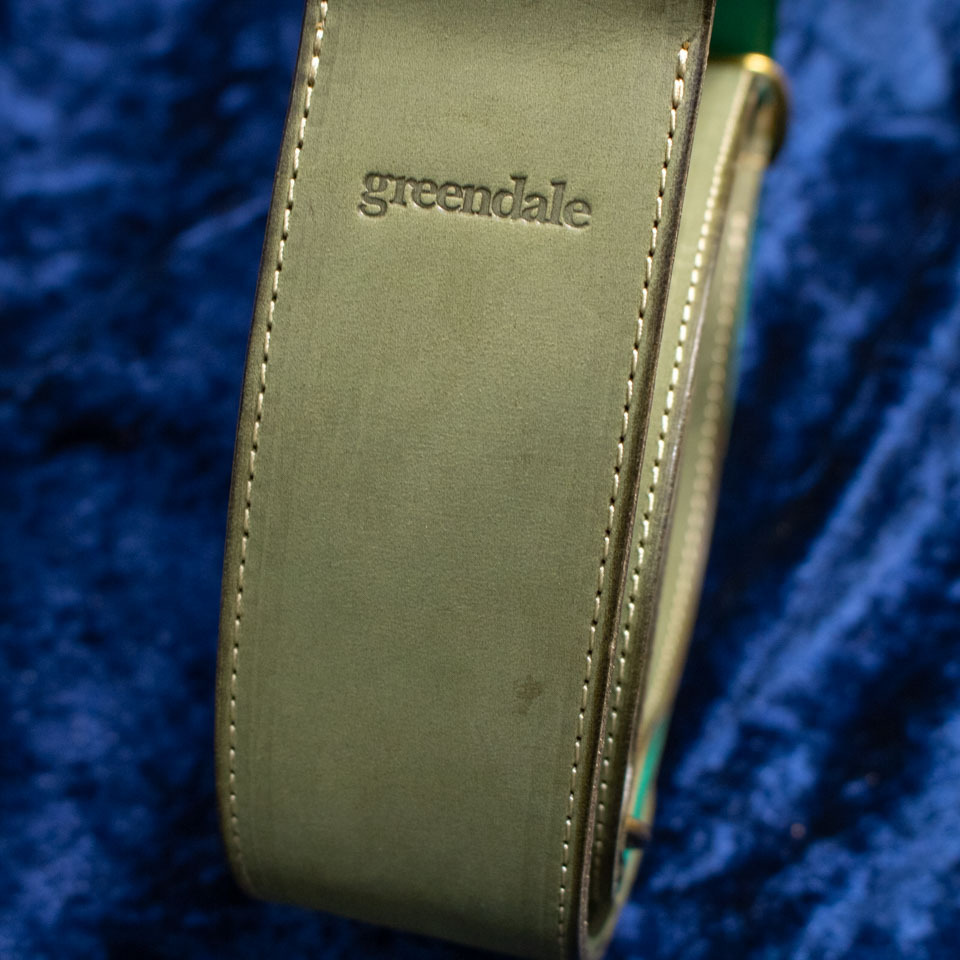 表面をブラシ加工した革でオリーブ色っぽいグリーンですので緑系のカラーに合わせるのはもちろん、サンバースト等の無難なカラーのギターの差し色にしてもかっこいいかもしれません。