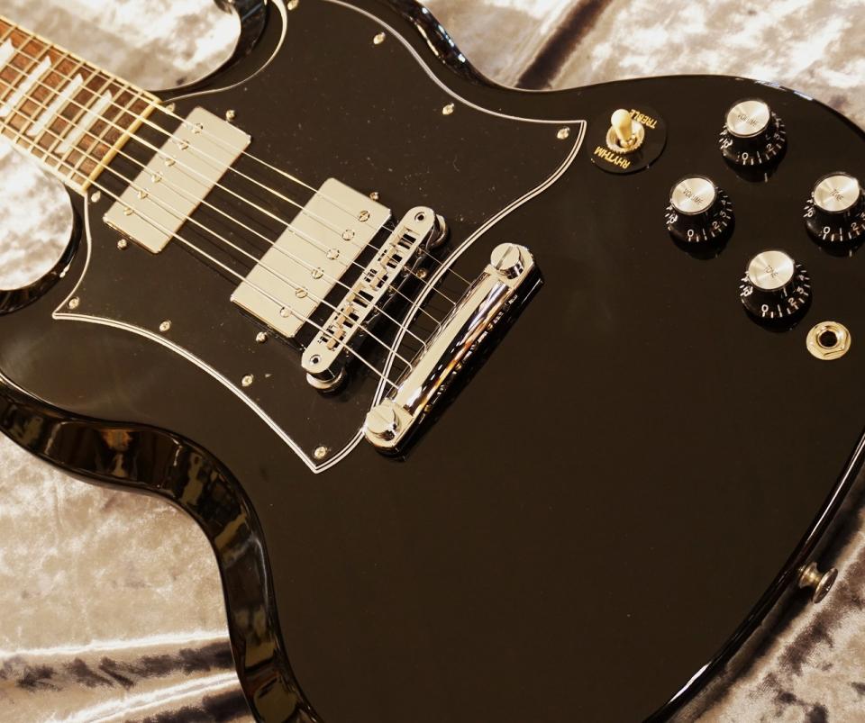 黒地に黒のラージピックガードがクールな【SG STANDARD Ebony】