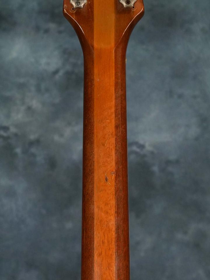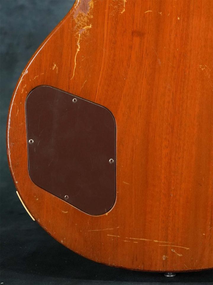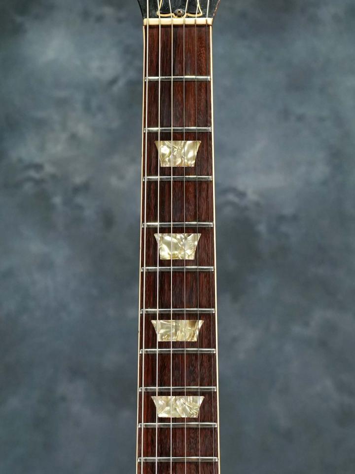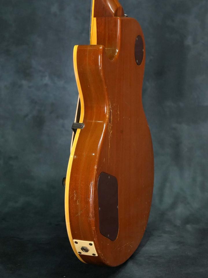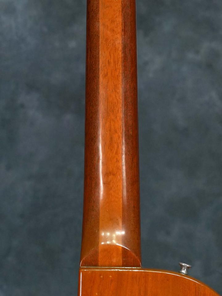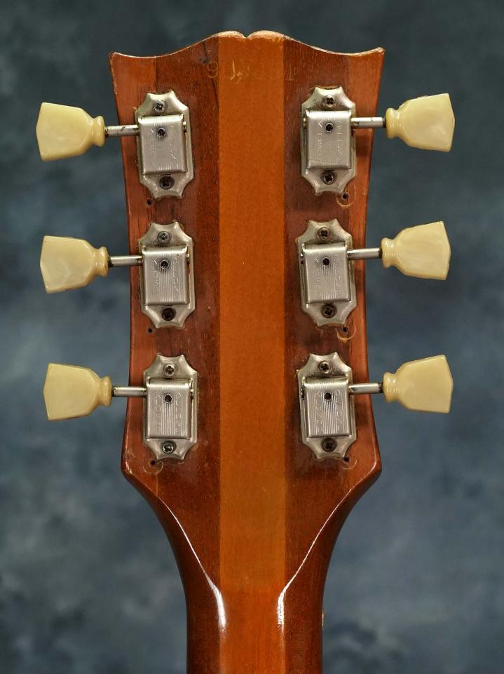 メイプルトップ&マホガニーの間に薄いメイプル材を挟んだ「パンケーキ」構造のボディバック、スモールボリュートの入った3-Pieceマホガニーネック、ローズウッド指板、1970年よりヘッド裏には「MADE IN USA」の刻印が入りますが、本器はシリアルナンバーのみでMADE IN USAの刻印が無い1970年初期モデルとなります。