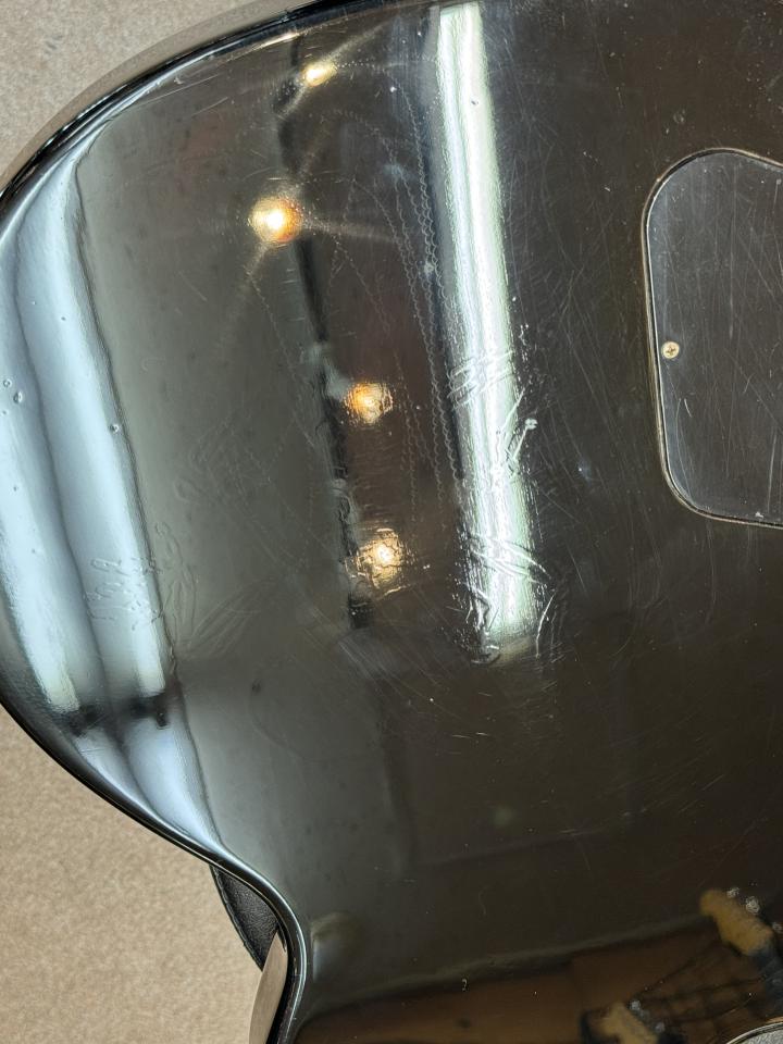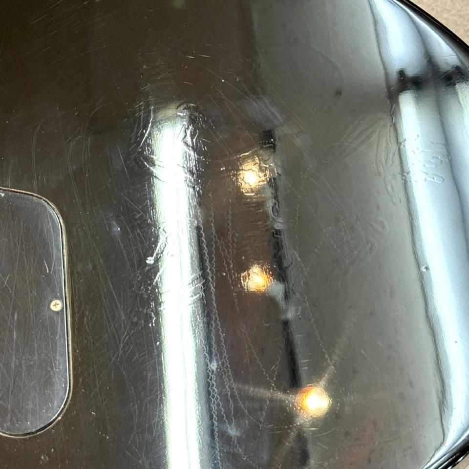画像では映り込みずらいですが光の反射でわかる程度のステッカー跡があります。ネックの状態はストレート、フレットの残りは7割程です。