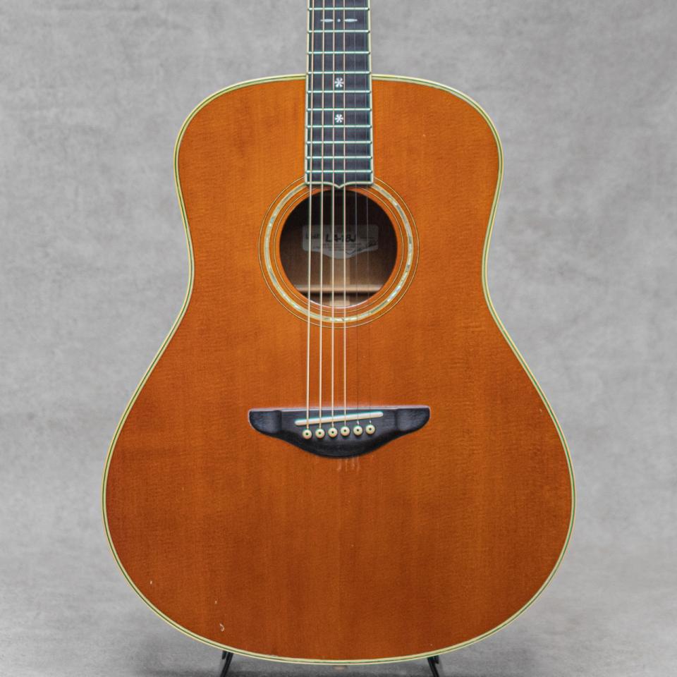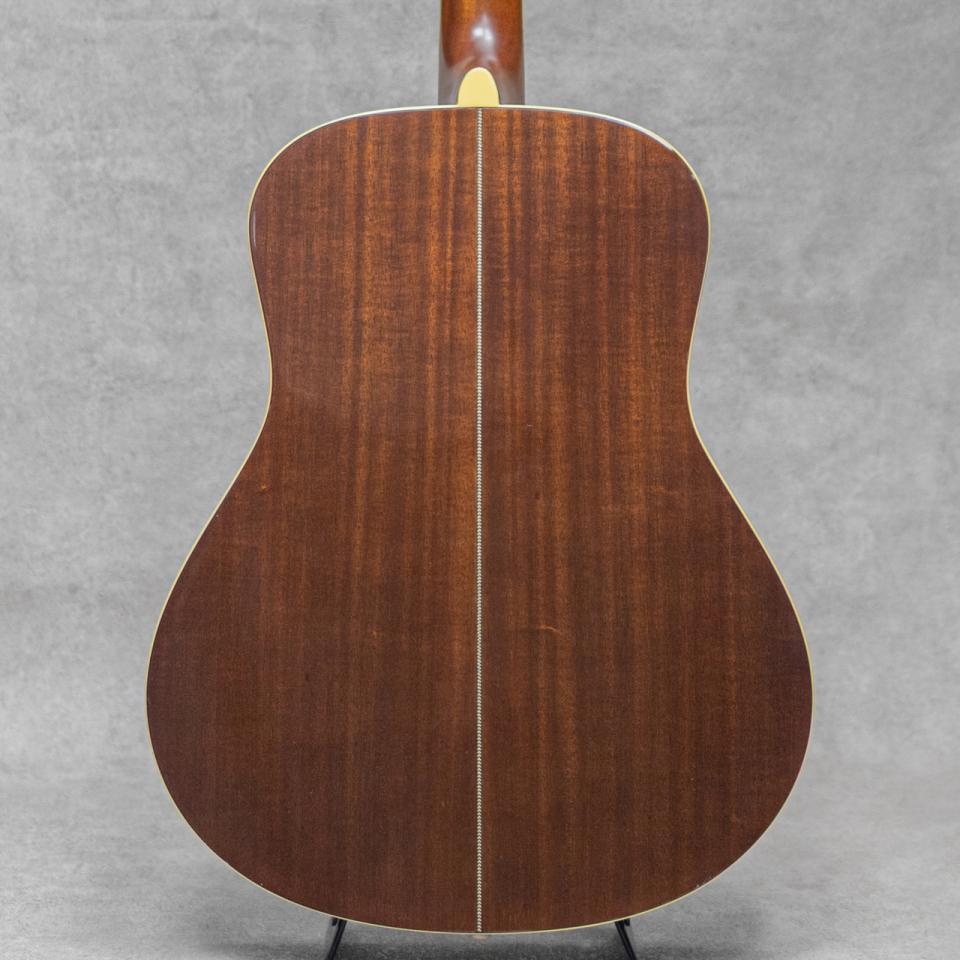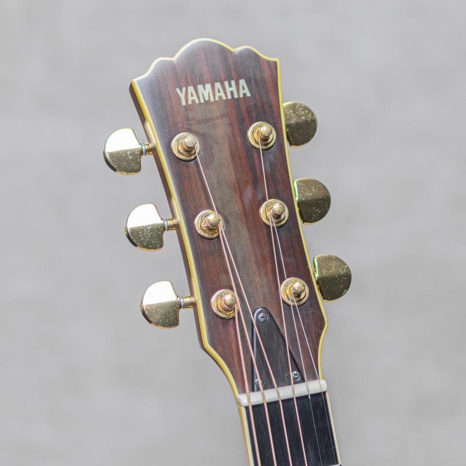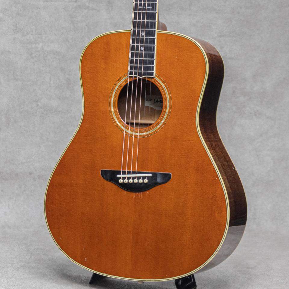ブックマークする 値下げ通知に登録日本が世界に誇る楽器メーカー"YAMAHA”。ギターにおいても数々の銘器を産み出し、今なお進化を続ける日本発ブランド。そんなヤマハのいち時代を支えた”LA”モデルは、ひとまわり小振りな独自のボディーシェイプと、いまだ人気の高いLAヘッドシェイプが印象的なテリー中本氏デザインの秀逸作。石川鷹彦氏、井上陽水氏の使用でも有名で、多くにミュージシャンが愛用したモデルです。本器は1994年にラインナップされた当時LAシリーズのミドルモデル”LA-18J”。1995年製USED品。スプルーストップ、マホガニーサイド&バック、マホガニーネック、ストライプドエボニー指板、エボニーブリッジ、スノウフレイクス&キャッツアイ指板インレイ、アバロンロゼッタ、ヘリンボーンバックストリップ、TM-37Gペグ。シンプルな外観がゆえのトラッドな美しさが際立つ”LA”は、その外観に魅了された方も多いモデル。小振りゆえのキレの良い美しいサウンド。それでいてしっかりと音量もあり、ストロークからフィンガープレイまでノスタルジックに聴かせてくれます。ヘッド天神板に経年による塗装の白化が見られて、ボディ・ネックに全体的な上吹き補修がされていますが丁寧な作業で質感を損ねていません。またブリッジ上面に研削をした後が伺えますが、ブリッジ厚は過度に薄くはなっておらず良好。使用に伴う小傷や打痕は見られますが、ウッドクラックなどの致命傷はなく良好。ネックまわりも良好で弾きやすいアクションをしっかりと保っています。エンドピン部が12mmに加工されていますが、現在はコンバージョンエンドピンが装着されています。気軽に使える実力派の1本です。少しサイズがアンマッチですが、Grand Oply製のファイバーハードケースが付属します。