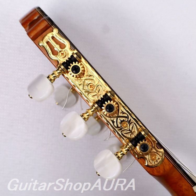 人気ギタリスト沖仁オリジナルモデルの製作により、現在国産のフラメンコとしては最も新しいファンを増やしているブランドの一つ。むせかえるような情感というよりは、楽器としての機能性の高さと、シャープネスや反応、音色の明朗さなど全てにおいて不足のないバランスが魅力。しかしながらその土台にしっかりとスペイン的なニュアンスが通底しているところ、製作家の面目躍如といったところでしょう。ジャンルを超えてオールマイティに使用できる一本です。全面セラック塗装で良材を用いた仕様、コストパフォーマンスの高さも人気のモデル。