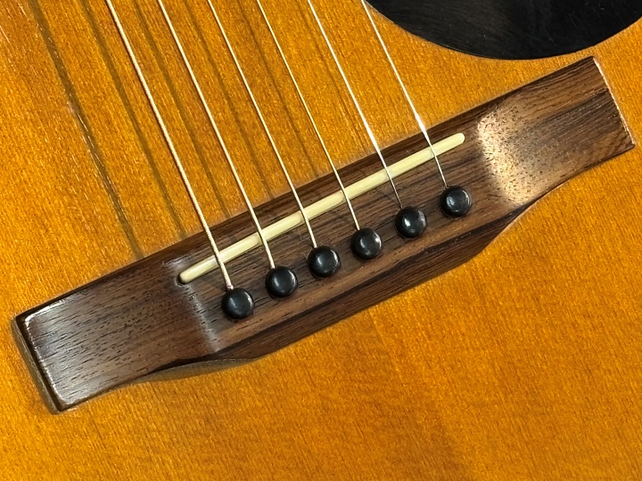 トップはスプルース、サイド、バックはマホガニー、エボニー指板、ハカランダブリッジです。材の選定にもこだわりが感じられますね。