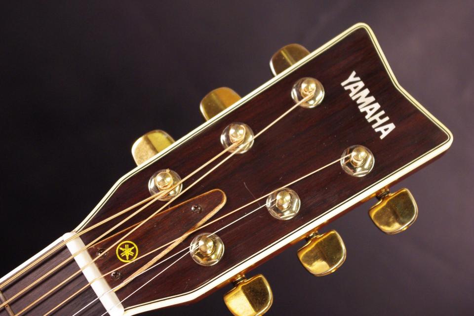 1970年代ヤマハ L-8が入荷しました!!トップはえぞ松、サイドバックにはパリサンドルのオール単板を採用した前期型になります!シリアルナンバーから1975年生産が有力でトップにセンタークラック補修、所々に傷がありますが全体的に綺麗に残っていました。ヤマハのゴールドペグ、べっ甲柄ピックガードなど主なパーツもオリジナルで残っています。ネックヒールへのストラップピン加工、ピックアップの取り付け加工もございません。ナット幅は約44mm近くこの時期のヤマハはやや太めのしっかりしたグリップになります。ネックのアングルは14フレットジョイント付近から元起きが出ています。トラスロッドの動作には余裕がありました。フレットの減りは少なめで今後も安心いただけます。ブリッジはオリジナルの高さでサドル残は少なめで弦高は12フレット6弦側で約2.7mm、1弦側で約2.1mmの高さで調整しています。ヤマハらしい輪郭のくっきりとした華やかなサウンドで指で弾いてもピックを使ってもバランスよく応えてくれます!低音も重厚でストロークではパワフル!是非この機会にどうぞ!汎用ハードケース付き