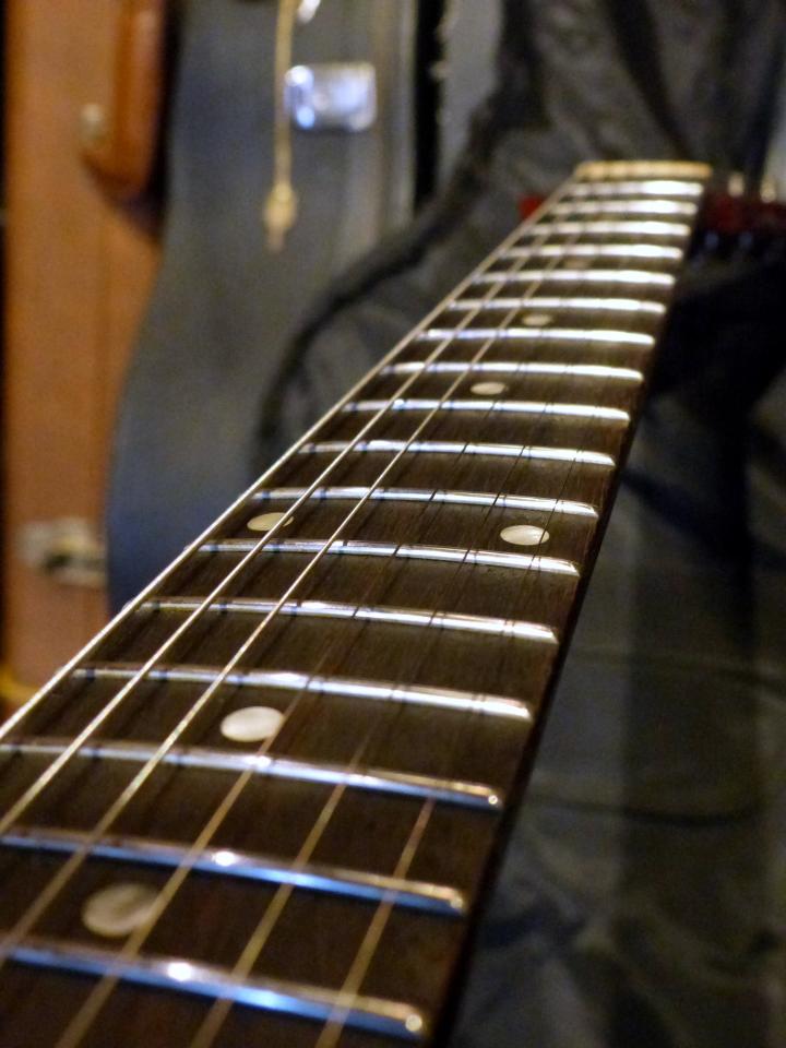 フレットの磨り合わせは多少に関わらず全ての楽器に施していますので、デコボコなど一切無く、ビビリ、ツマリなどはありません。