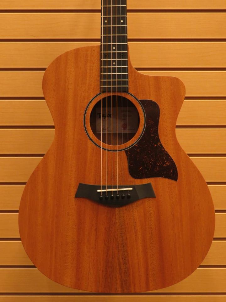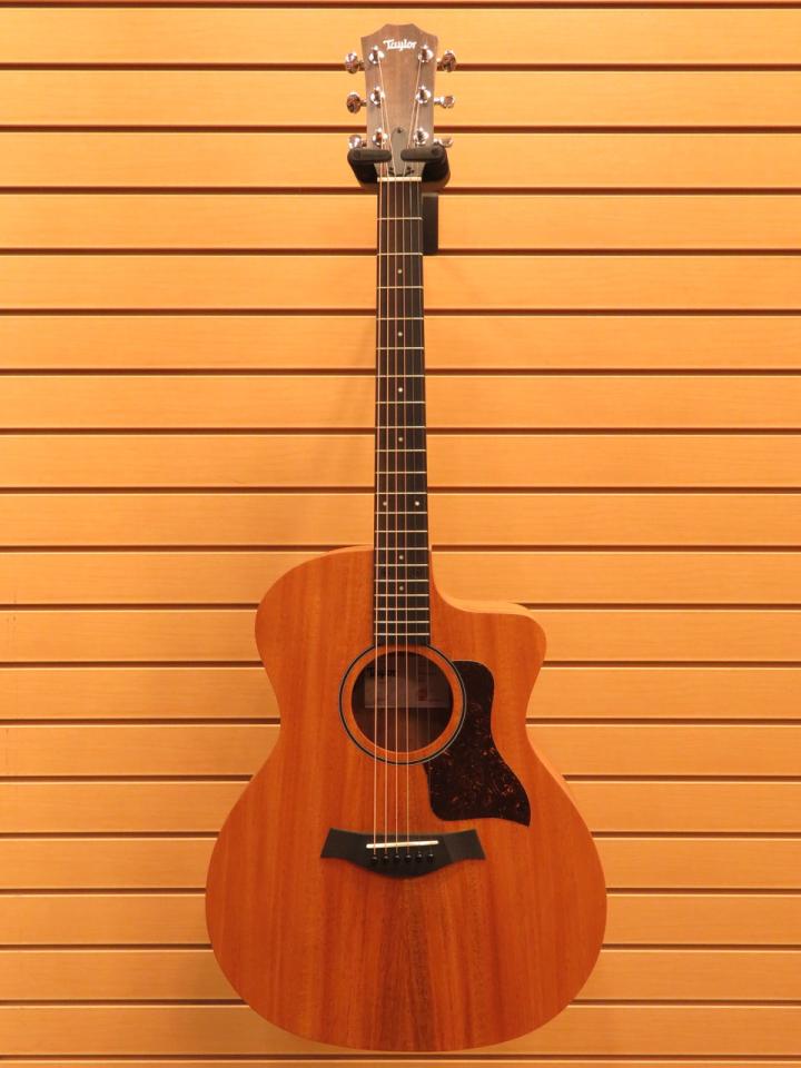 暖かく生き生きとしたアコースティックキャラクターとTaylorならではの演奏性を融合させた24ceは、フルサイズ、フルスケール・カッタウェイのGrand Auditorium体験をお求めやすいエントリーレベルの価格で実現しました。ソリッド・マホガニー・トップは、中音域に力を入れた暖かくドライなトーン・プロファイルを提供し、ルーツのある素朴なサウンドを好むプレイヤーに最適です。レイヤード・サペリ・バック&サイドを特徴とする24ceのトーン・バランスは、ストラミングとフィンガースタイルのどちらのプレイヤーにも信頼できる選択肢となります。内部では、Taylor独自のボイシング・アーキテクチャーが全体の音量とサスティンを強化し、エボニー指板全体でノート間の倍音の一致が向上しています。スリムでヒールレスのメイプル・ネックは、Taylorプレイヤーが期待するスムーズで馴染みのある感触を提供します。視覚的には、24ceは控えめな4mmドット・インレイ、シングルリング・ブラック・ロゼット、クローム・チューナー、フェイク・べっ甲ピックガードにより、シンプルでありながらスタイリッシュです。このモデルにはオンボードの Fishman Sonitone GT-2 エレクトロニクスが搭載されており、ギグバッグに入れて出荷されるため、どこにいても簡単に接続して音楽を演奏できます。