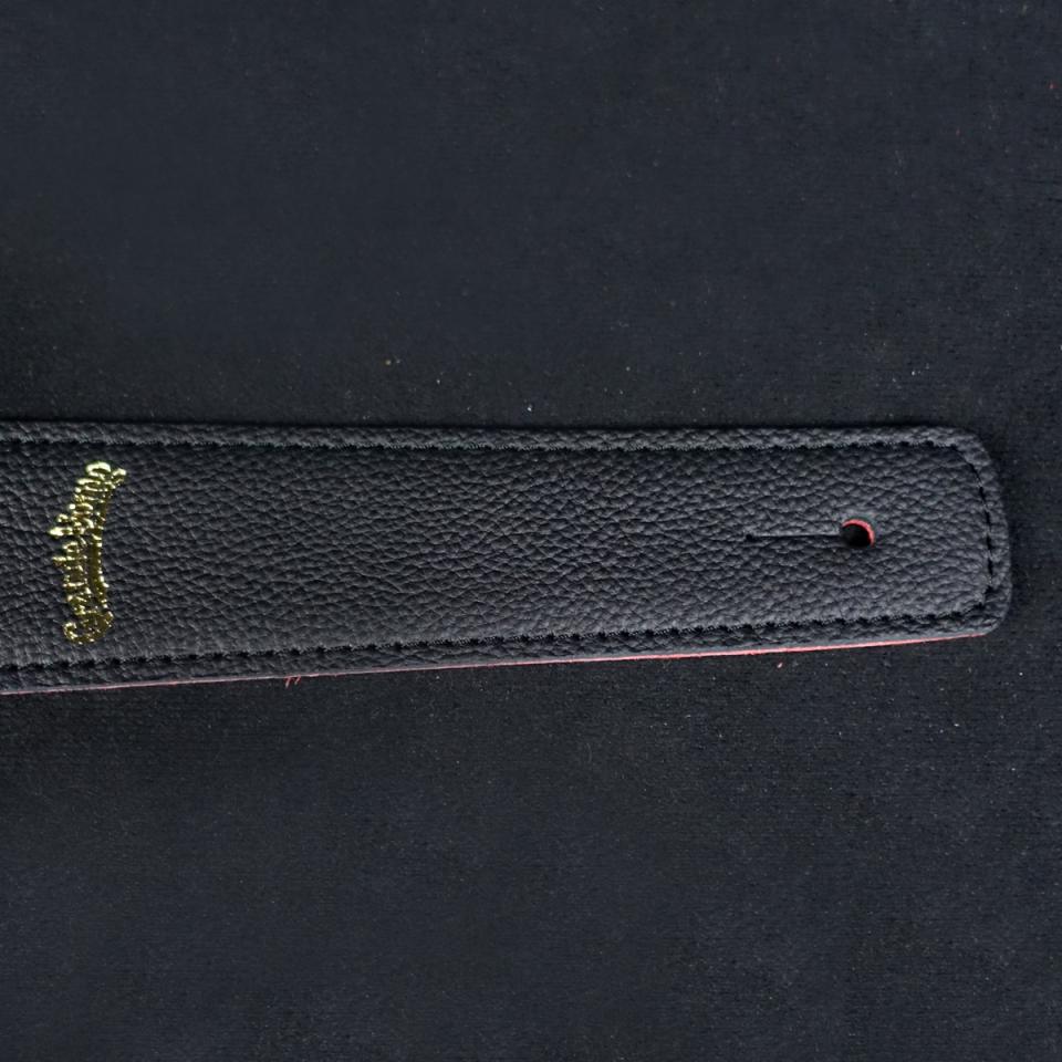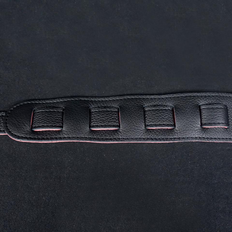肩口の幅が5.5cmギター接続部(剣先)が38mmと非常にスタイリッシュなギターストラップとなります。表面に使うのは高級感の漂う厚みとしっかりとしたコシ感を持ちながら非常に柔らかいモチモチの国産の天然シュリンクレザー。