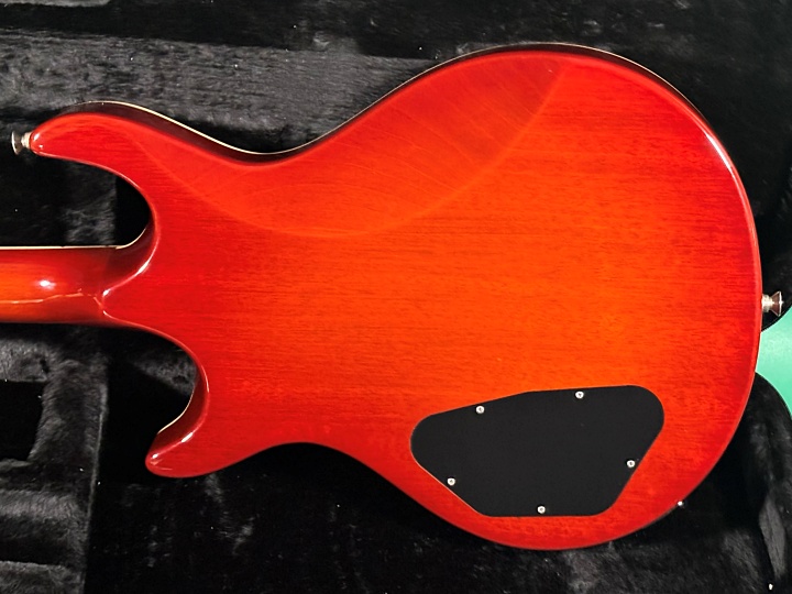 ボディはイースタンフレイムメイプル/マホガニーで、ネックはマホガニー、指板はハカランダ、ピックアップはLOLLAR IMPERIAL LOW WIND HUMBACKERが2基搭載されています。トーンプッシュ・プルでコイルタップも可能でサウンドバリエーションも豊富です。