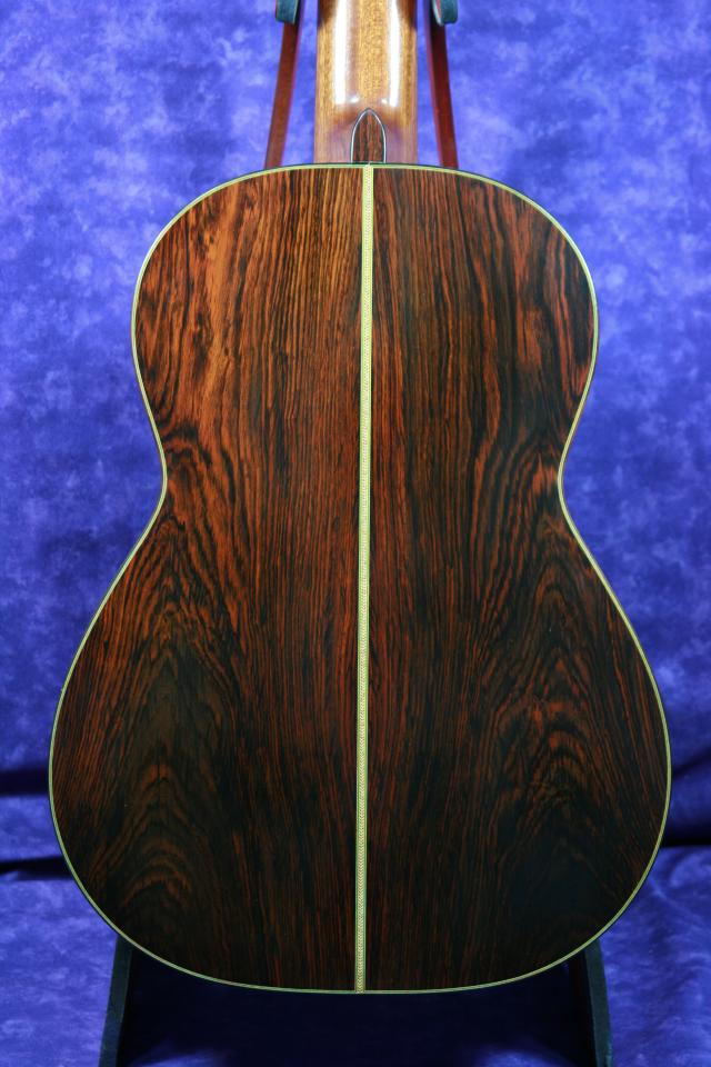 表面板はチカラのありそうなジャーマンスプルースでサイドバックはハカランダです。
