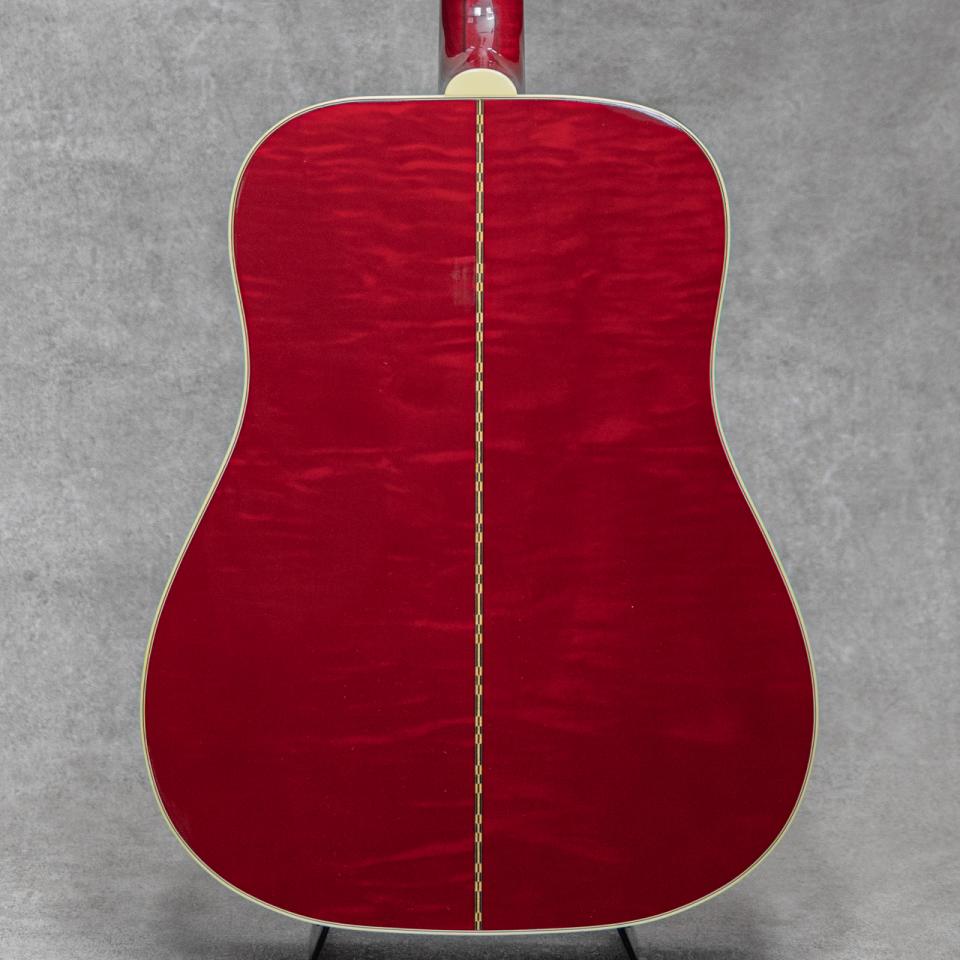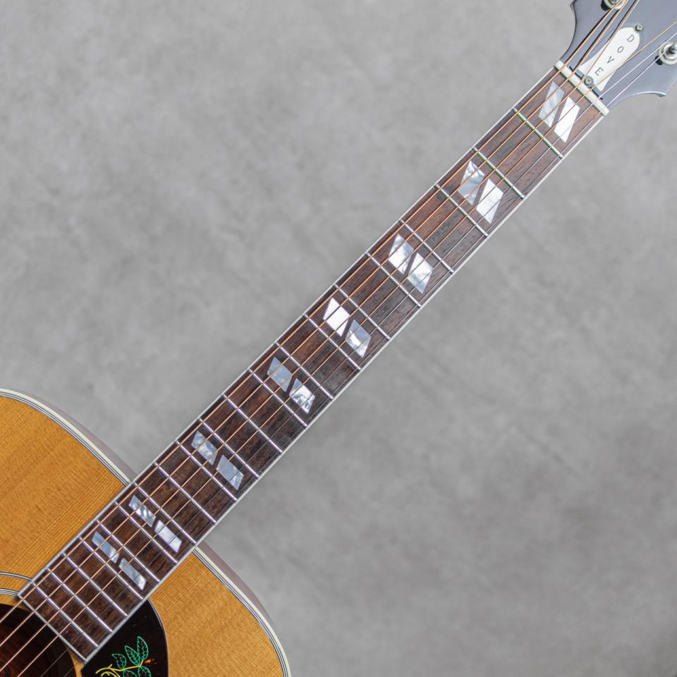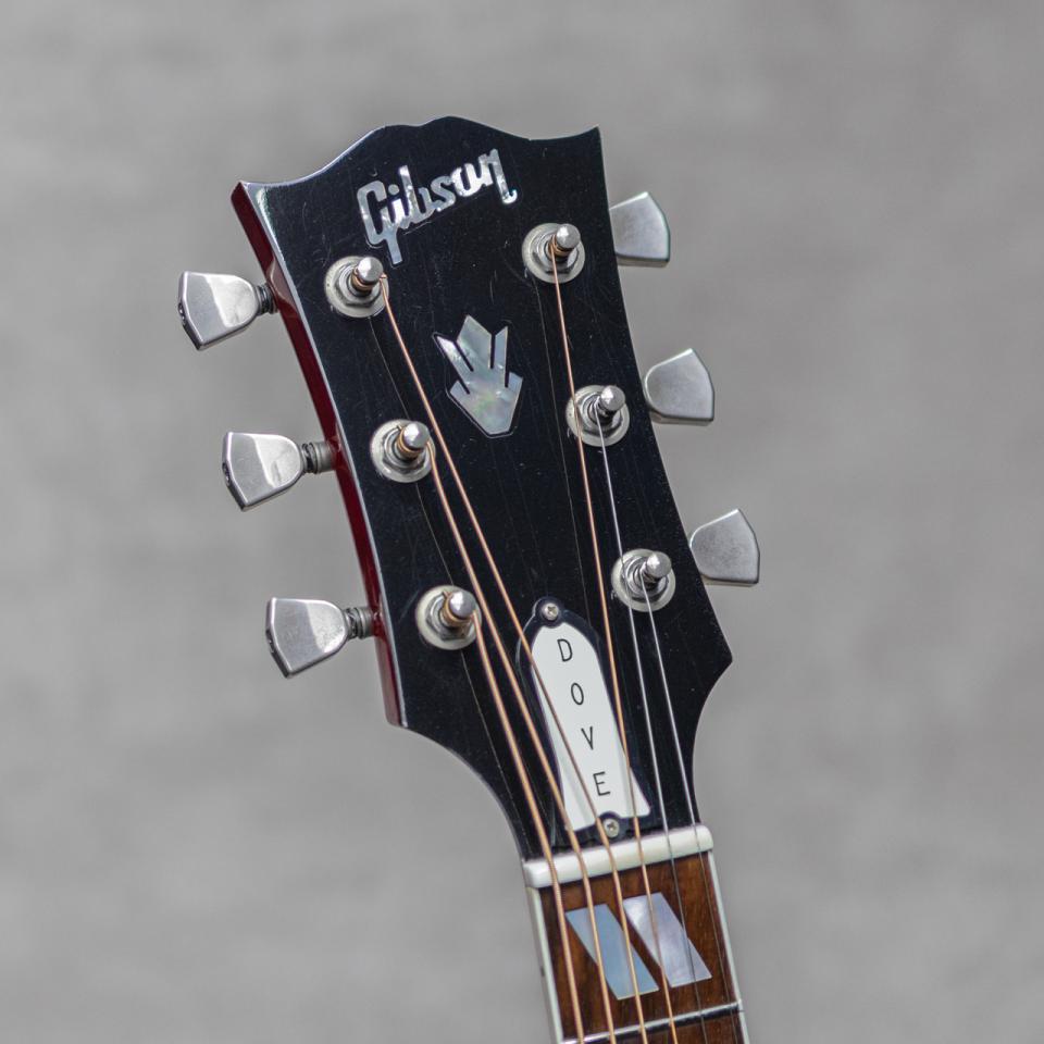 ブックマークする 値下げ通知に登録1960年に発売されたスクエアショルダージャンボモデルの”Hummingbird”に続き、上位モデルとして1962年にランナップされた”Dove”。上位モデルの証であるラージヘッドとメイプルを使用したボディに、鳩がインレイで描かれたピックガードが特徴で、そのまま名称の由来となっています。本器は2001年製極上USED品。フィギュアド杢の浮き出るゴージャスなメイプルボディー&ネック、締まりがあり歯切れ良い響きが魅力の1本。目のよく詰まったスプルーストップ、フィギュアド杢がゆらめくメイプルサイド&バック、フレイムの浮き出るメイプル3pcsネック、ローズウッド指板&ブリッジ、MOPクラウンヘッドインレイ、グローバー102Cペグ、 MOP指板ダブルパラレログラムインレイ、”Dove"インレイラージピックガード、スキャロップドXブレイシング。奥深く響くジャンボサウンド。ドシっと低音の効いた箱鳴りをキレの良いアタックで刻むロックサウンド。他のジャンボモデルでは得られないダブならではの響きです。ピックガードの塗装がほんの少し薄れてますが、それ以外に大きく目立つ傷の見られない極上コンディションの本器。ウェザーチェックや若干の小傷は否めませんが、25年近くの経年を鑑みると充分キレイな1本です。ネックまわりも良好で、弾きやすいアクションをしっかりと保っています。経年も伴いまさに弾きごろの本器、”Dove”。まだまだこれからガシガシと弾いていただきたい1本です。オリジナルハードケース付属