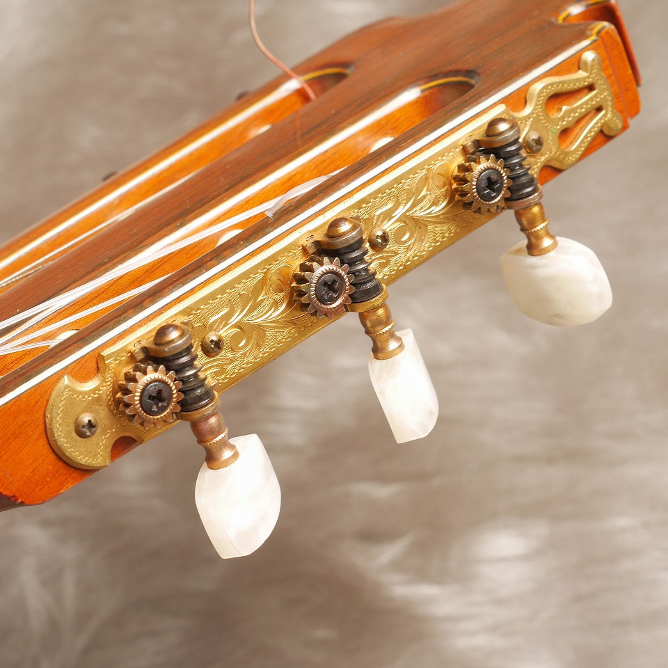 横裏板の塗装の変色、弾き傷など年代相応の外観にはなっていますが、弦高・ネックなど演奏に関わる部分の状態は良好です。