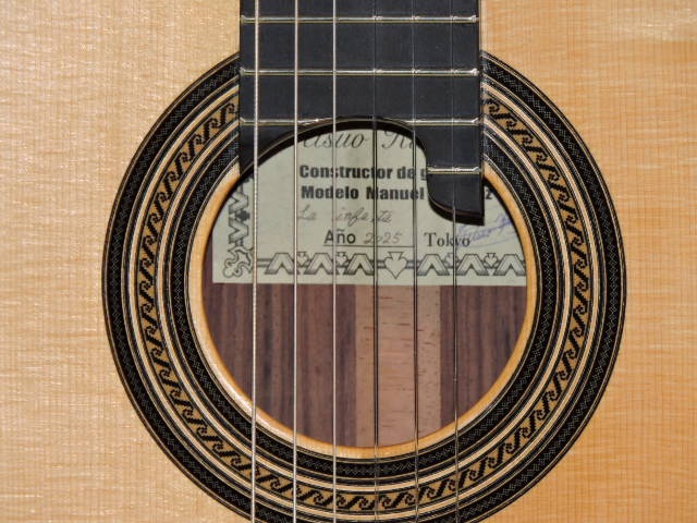 インファンタ・モデルは若きセゴビアがデビューに際して手にした名器、M.ラミレスをモデルとして製作されていてボディーシェイプ&サイズ、ネック形状、ロゼッタデザインなどをコピーしています。