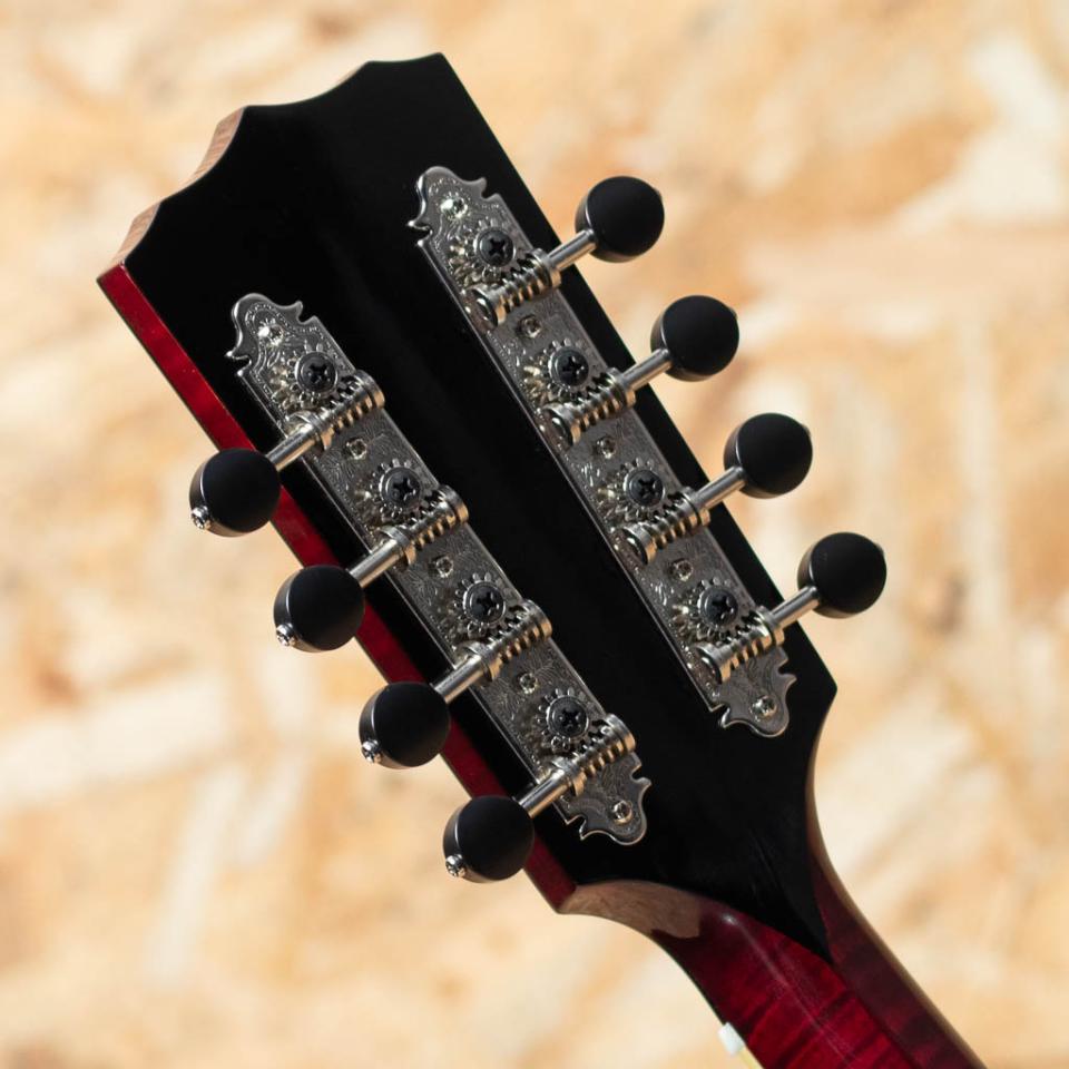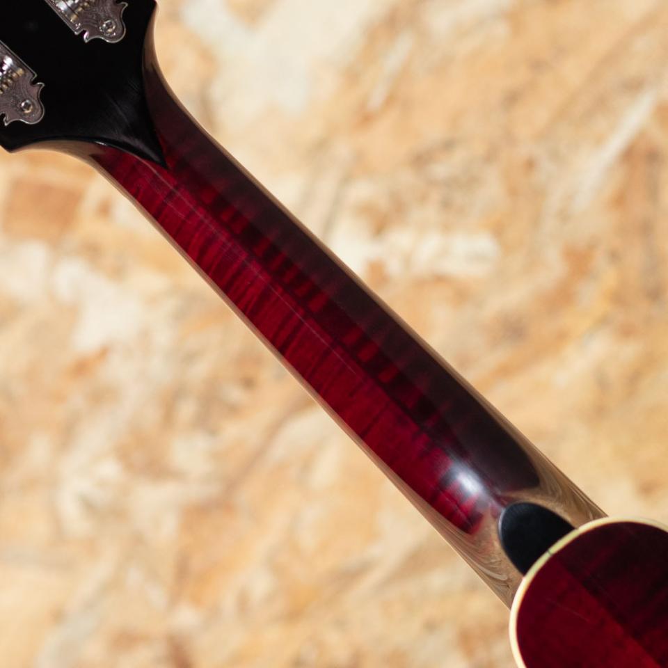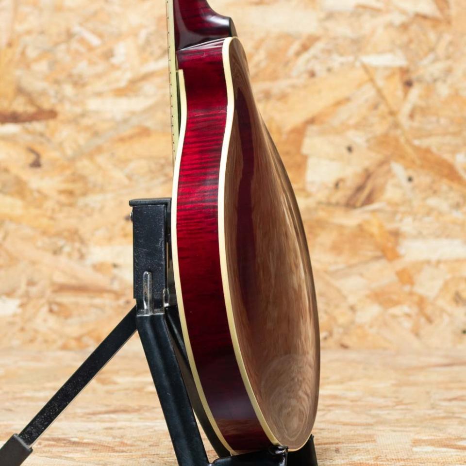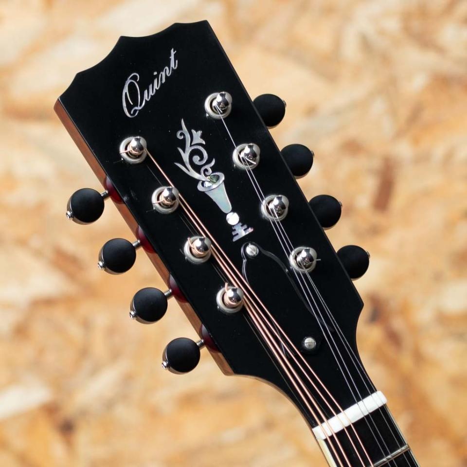 いくつかのメーカーで楽器製作を学び、その後North Field Mandolin立ち上げから製作に関わった後に独立する中国のMaster Luthier Qin Ji Duoが製作するQuint Mandolin。こちらはStyle-Aのクラシカルなオーバルホールをもつ"QT-A4 Black top"。12FジョイントのオーバルホールStyle-A。パドルスタイルのヘッドにGotohペグ、Quint オリジナルテールピース。トラディショナルデザインをもちながらもラディアス指板にミディアムサイズのフレット、指板エンドのスクープ加工、アジャスタブルブリッジと現代的なアレンジを取り込み、レトロルックながら弾きやすさ、使いやすさを追求したモデルに仕上がっています。削りだしイタリアンスプルーストップ、削りだしフィギャードスイスメイプルバック、スイスメイプルネック、プレミアムエボニー指板、アイボロイドバインディング、極薄のセラックヴァーニッシュフィニッシュです。ナット幅30mmで握りごたえのあるネックに12Fジョイントならではの芳醇で深くコクのある響きをもちながら、パワフルで抜群の音量感を誇り、メローになりがちなワウンド弦でもしっかりとエッジの効いた鳴りを聞かせてくれます。ブラックトップにオーバルホールは精悍な顔つきとオールドな雰囲気を併せ持つグッドルッキンな仕上がり。トラディショナルな良さと現代的な元気のある鳴りを融合したかの様な響きを感じていただけるでしょう。アイリッシュやフォーク、ジャズなど幅広く使えるフラットマンドリンです。是非お試し下さい。塗装のケースマケが全体的に見られ、ハードケースにもチョイ傷があるため¥231,000を特価販売致します。Fiber Case付属