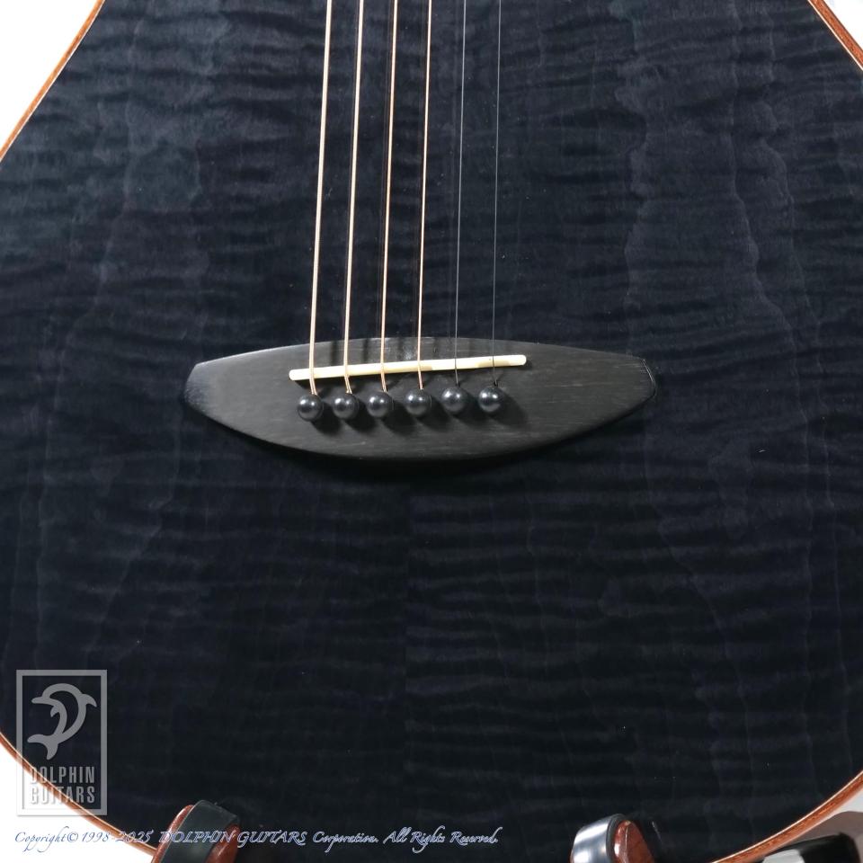 美しいカーリーメイプル杢が映える幻想的なギター。杉田健司がブレーシングデザインをしたモデル。