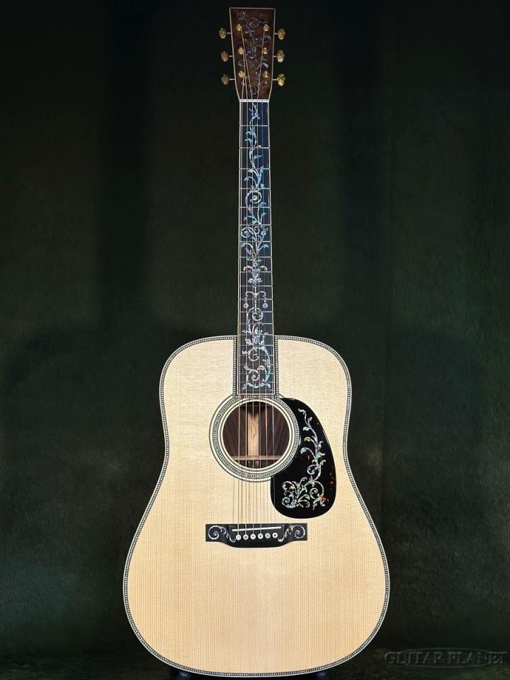 「生命の樹」を題材にした特別なインレイワーク。珠玉の木材を贅沢に使用した当店自慢のD-45。
