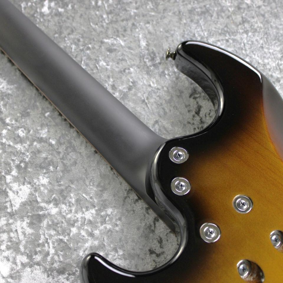 ボディ裏面から垂直にネックを固定する4本のネジに加え、ボディ裏から45度の角度でネックエンドを固定し、ボディとネックを強固に密着させ、より強烈な鳴りを生み出すマイター・ボルティングや、