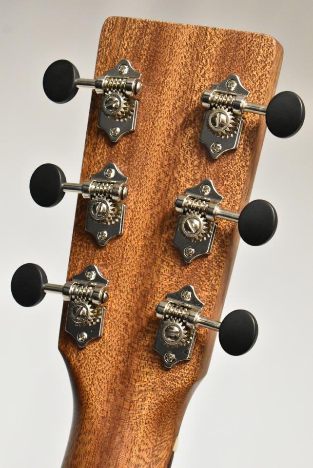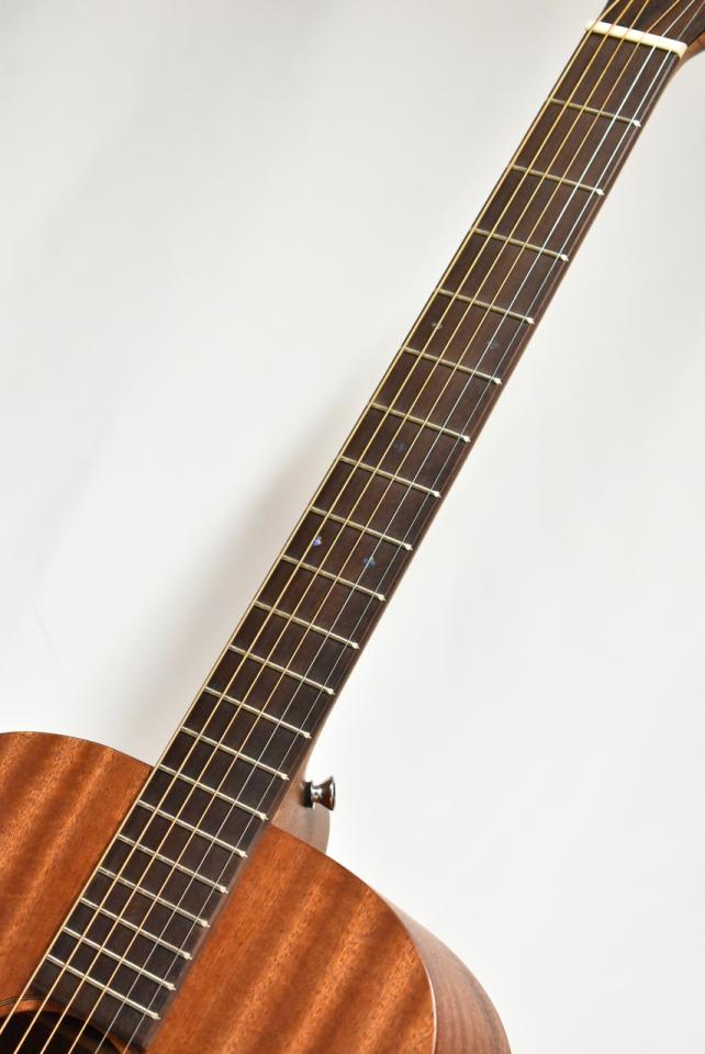 本機はスタンダードシリーズの000サイズを縮小し、適度なサイズ感は抱えた際に懐に良く収まり、小振りになった事でより抱えやすさが向上、全体的にさらっとした触り心地のサテン仕上げです。