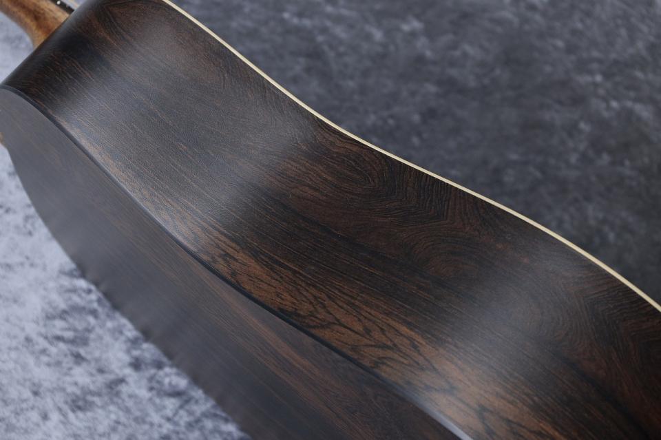 戦前のD-28を意識して、オープンバックギヤのペグを搭載したことでよりクラシカルなルックスに仕上がっております。