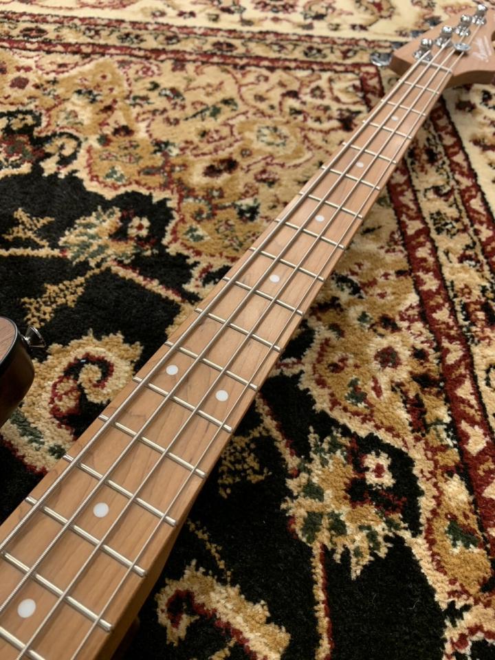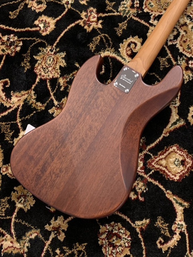 WLモデルは、Handmade Seriesで培ったWOODLINEの持つディンキーシェイプのボディを継承し、一般的なJBタイプのエレキベースより少し小さくなっているので、どんな方でも弾きやすくなってます。ボディトップには美しい杢目が目を引くウォルナット材を採用し、ボディバックには中低音が豊かなナトー材、ネック&指板には、高温で加熱処理をして、木材の中の水分や油分を一定数量に揮発させることにより剛性を高め、高級機種で採用される事の多いローステッドメイプル材が使用されております。