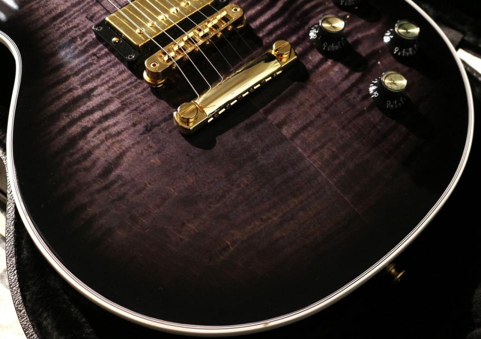 圧倒的な演奏性と存在感です!!美しいフレイムメイプルの杢目が浮かび上がるトランスエボニーブラックが輝くインレイやゴールドパーツとの相性抜群です!!無金利48回払い分割の場合、月々10,300~のお支払い