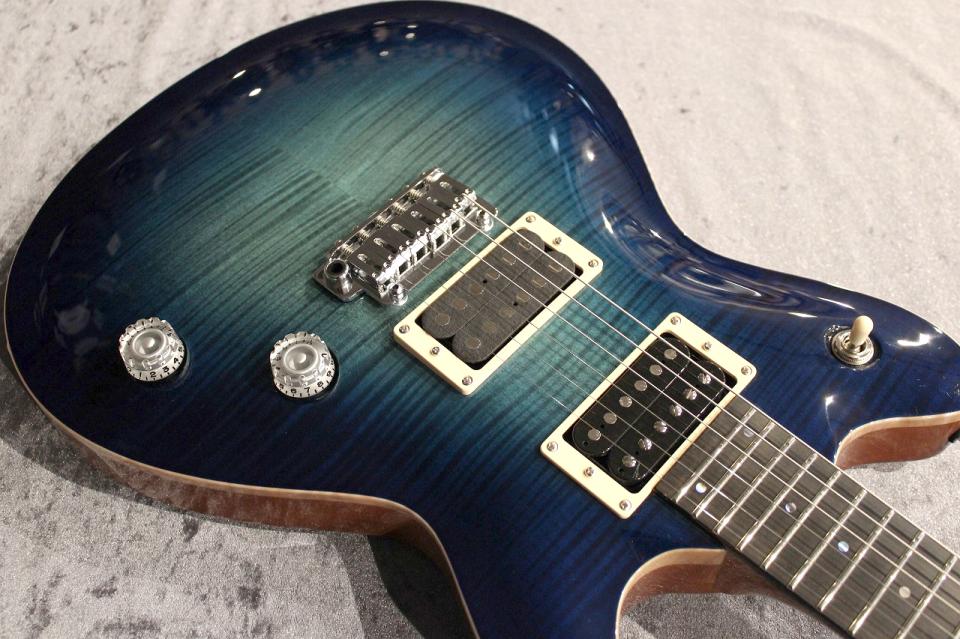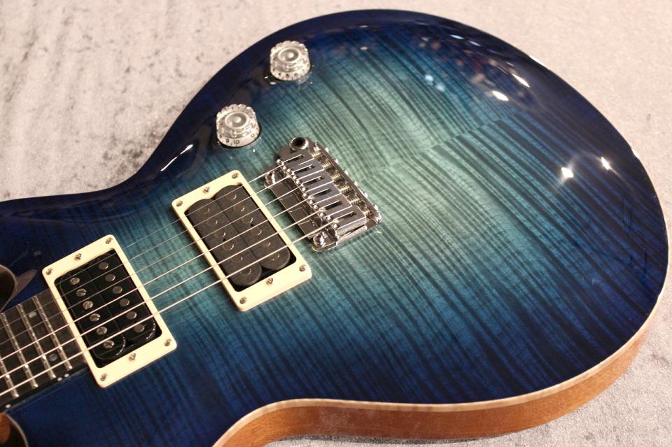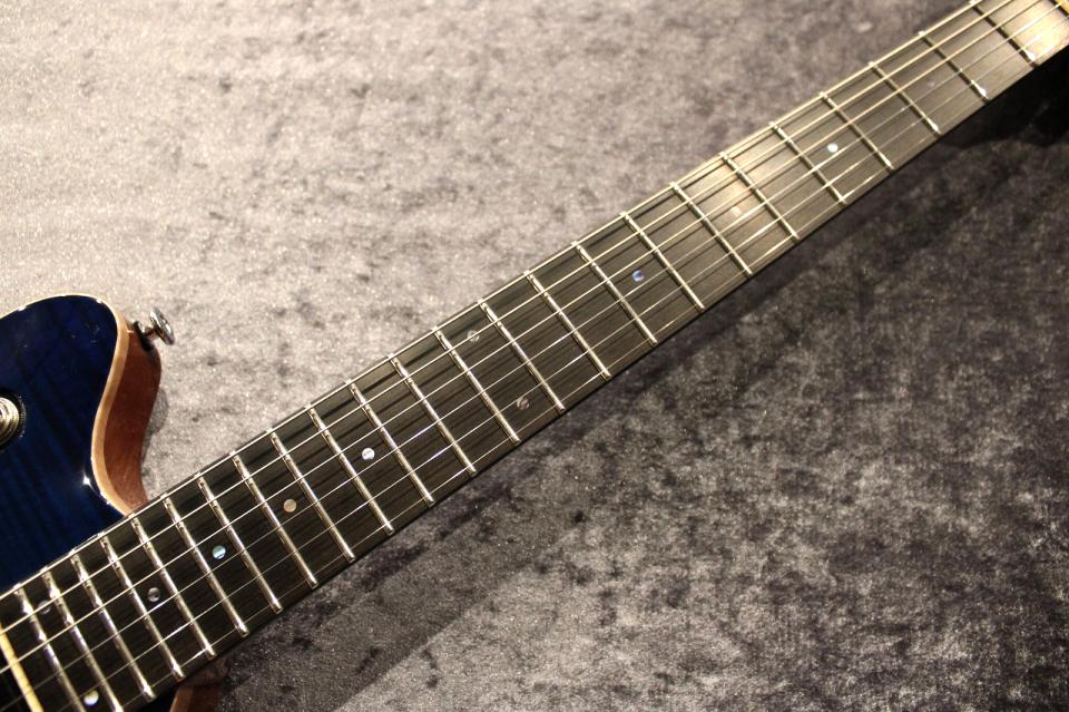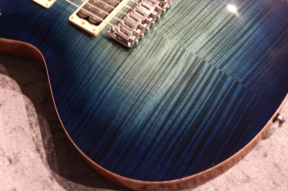 キラキラと光り輝き、激しく揺らめく様な杢を持つキルトメイプルとAqua Violet Glowカラーとが組み合わさった事で、宝石の様な美しさを感じさせる極上のルックスとなりました。