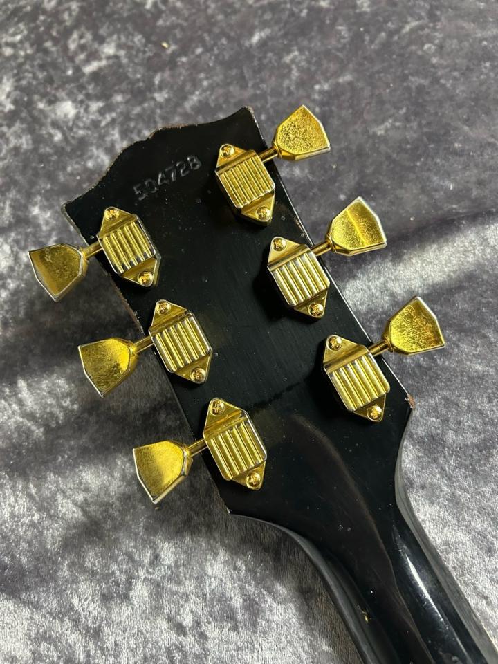1968年製のレスポール・カスタムは、いくつかの点で1950年代のモデルとは一線を画していました。先ずマホガニーボディの代わりに、マホガニーバックとソリッドメイプルトップ構造が採用されました。また、それまでのカスタムが3ハムバッカーであったのに対し、2ハムバッカーとなり、ピッキングエリアのクリアランスが得られました。また、ペグヘッドの角度は14度になったことで弦の張力が軽減されています。