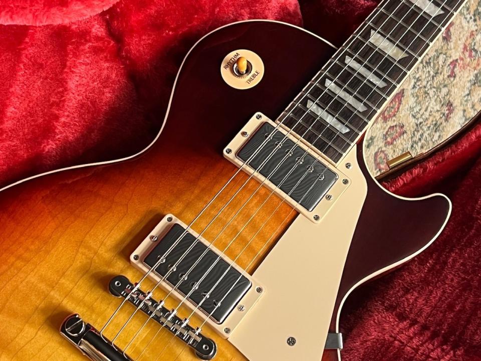 1957年に "P.A.F." が登場し”Les Paul”のスペックが確立された当初はゴールドトップのカラーリングが採用されており、1958年に初めて名称が "Les Paul Standard" と変更されチェリー・サンバーストカラーが採用されるようになりました。1959年は中でも人気があり、カスタムショップ製のリイシューモデルでも一番の人気を誇っております。