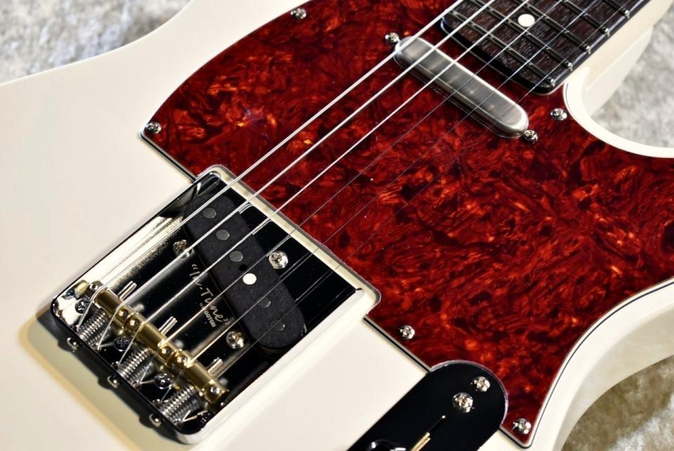 白いボディとネックにワンポイントとなっている赤べっ甲ピックガードが非常にクールなテレキャスターモデル!