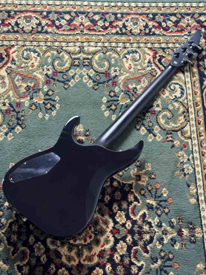 このギターは、そのルックスに劣らないパワフルなサウンドを実現するために、随所にこだわりが詰まっています。マホガニーボディと、セイモアダンカン製ピックアップの組み合わせは、重厚でタイトな低音と、鋭く突き抜ける高音域を両立。激しい歪みの中でも、一音一音の輪郭をクリアに保ちます。