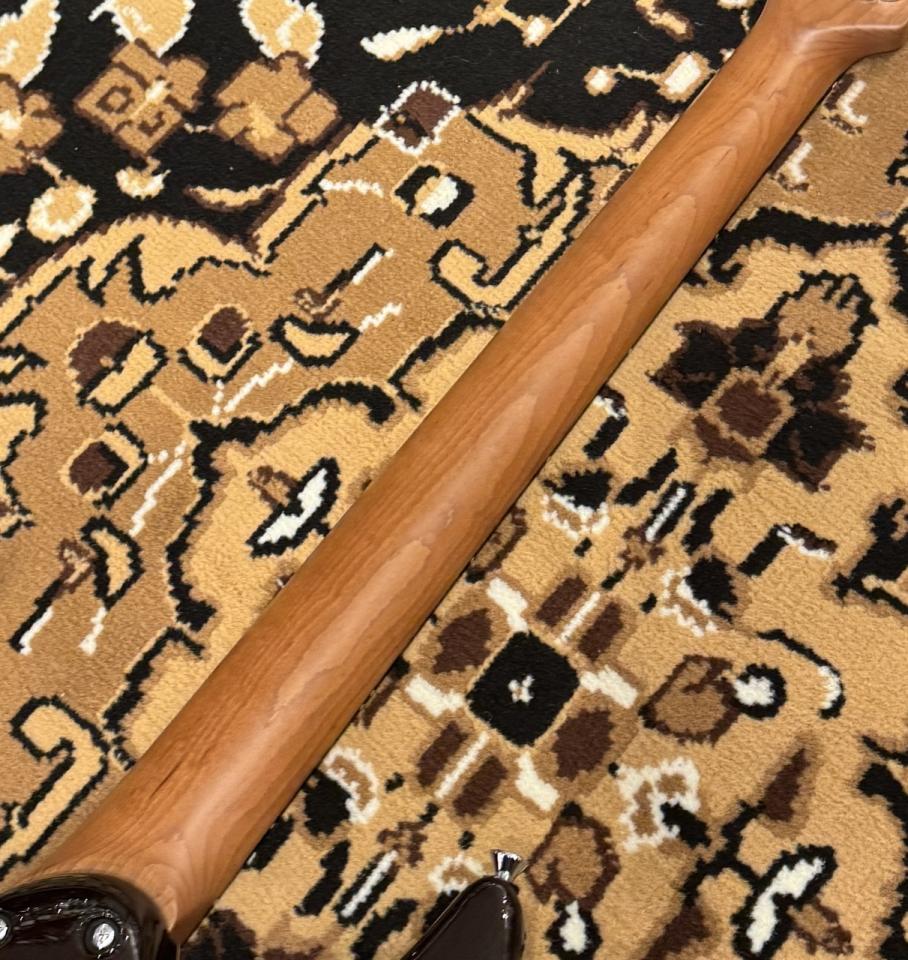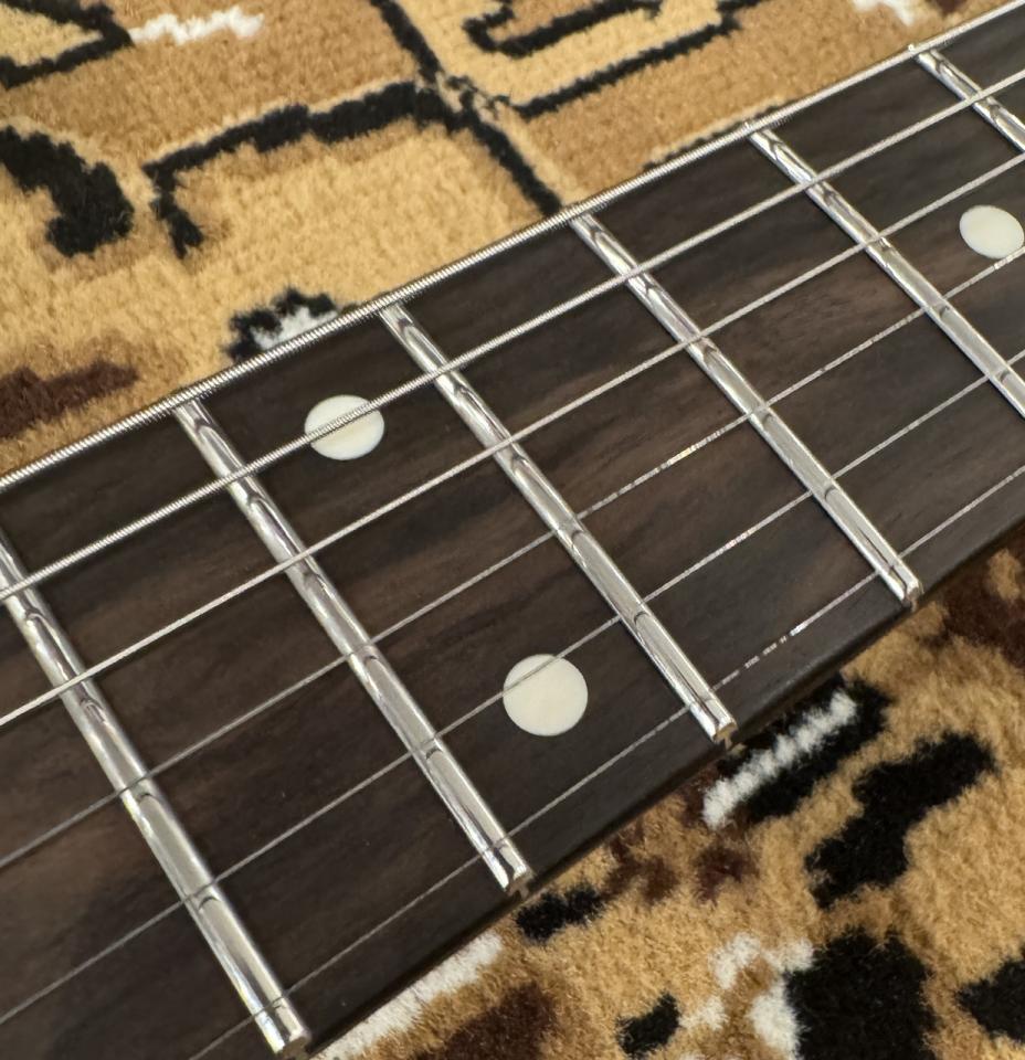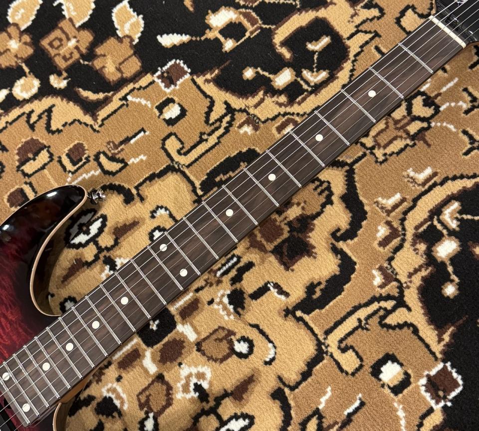 フレットには幅が細く背が高い、演奏性とサウンド面に富んだフレットサイズを採用した事に加えてステンレスフレットを採用しているので、非常に演奏性が高いギターに仕上がりました。