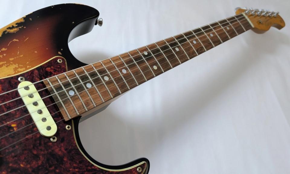 熟練の職人によって施されたレリック加工は、長年使い込まれた本物のヴィンテージギターさながらの風格を放ちます。ただ古いものを模倣するだけでなく、現代のプレイヤーが求める高い演奏性と安定性を両立した、まさに「弾けるヴィンテージ」です。