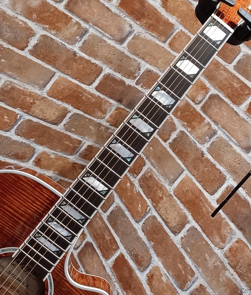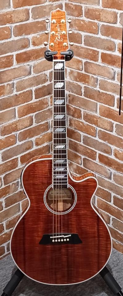 アーチトップにコア材の杢目が美しいシンボディモデル。