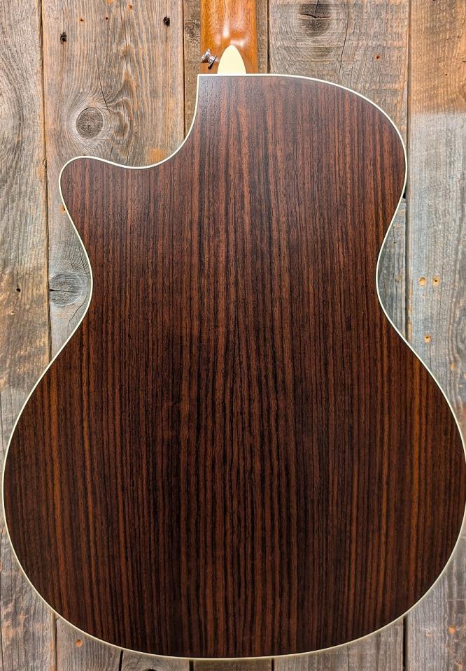 ボディ材はスプルーストップ、ローズウッドサイド&バックの組み合わせ。