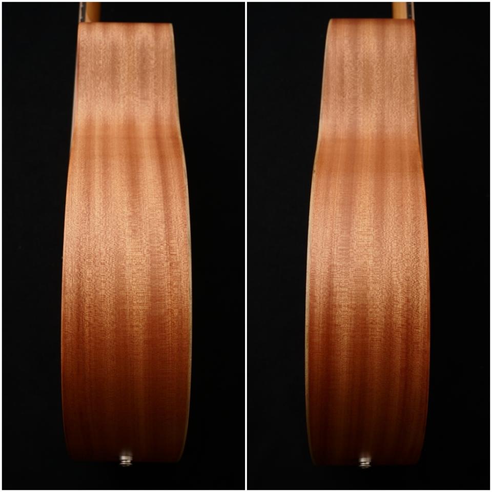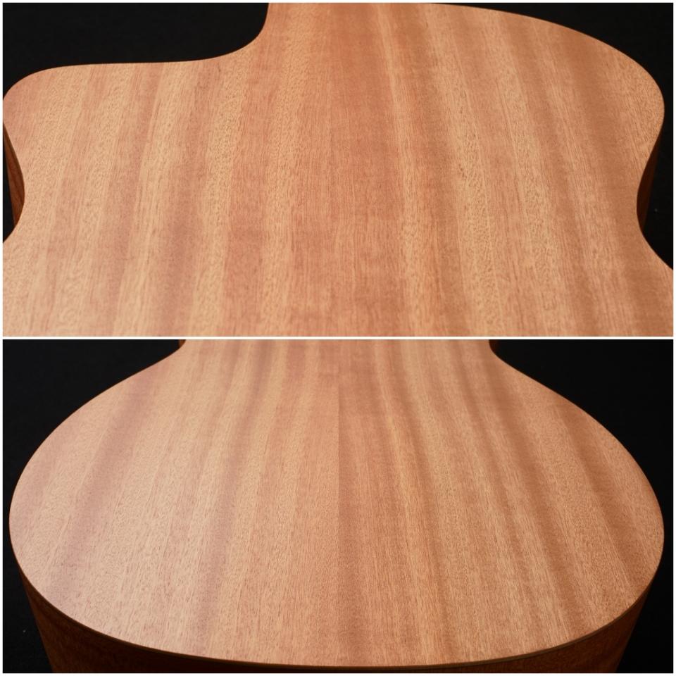 トップにはマホガニー単板、サイド&バックにはサペリ材を使用しています。