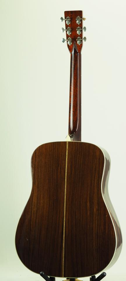 ハイライトは、アディロンダックスプルースを採用したトップになるでしょう。大音量で力強い響きが得られることで知られる最高峰のトーンウッドと、ドレッドノートのボディサイズによって生み出されるサウンドは圧巻の迫力です。そこにインディアンローズウッドのサイド&バックが煌びやかさと艶やかさを加えて、全体的な音色をまとめ上げています。