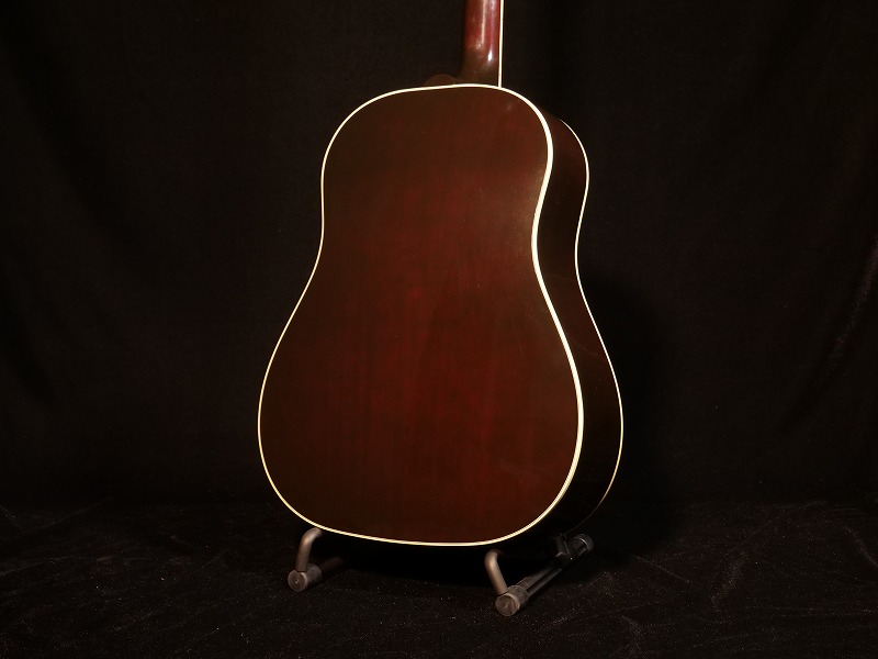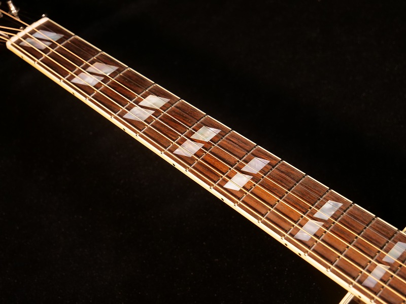 ボディシェイプはお馴染みのラウンドショルダー。シトカスプルーストップ、マホガニーサイド&バックのオール単板。ローズウッド指板&ブリッジ、厚めの鼈甲柄ラージピックガード、ダブルパラレログラム&クラウン・インレイ、グローバーオープンバックペグ、628mmスケール。クラシックなモデルが持つ往時の風合いを現代に取り戻したモデルです。