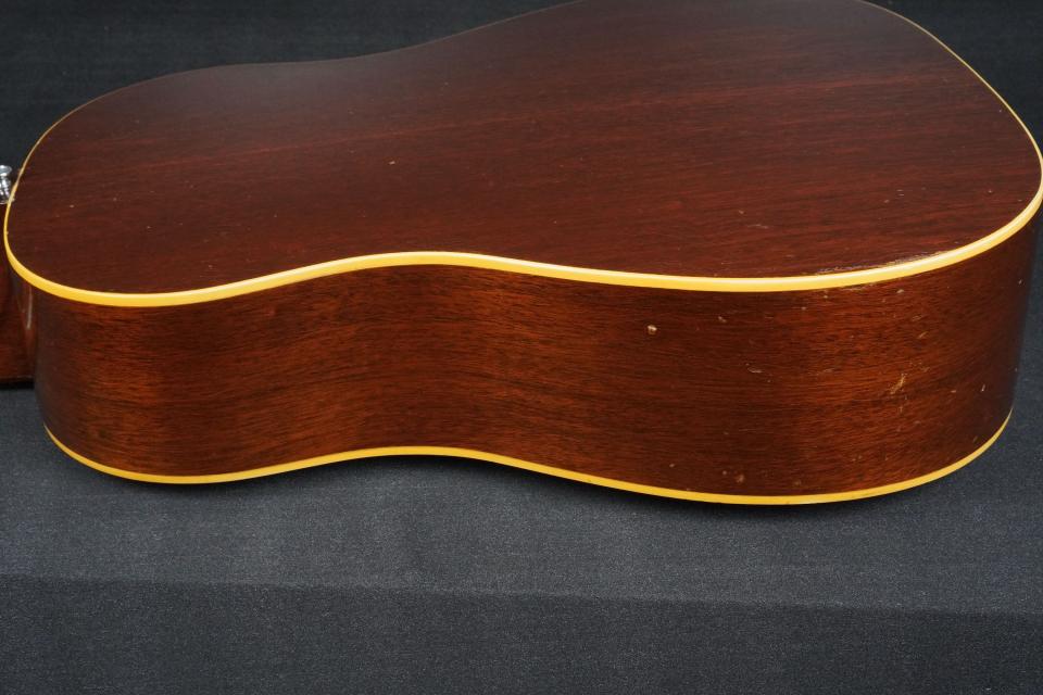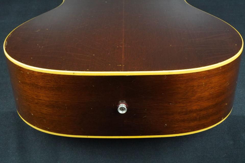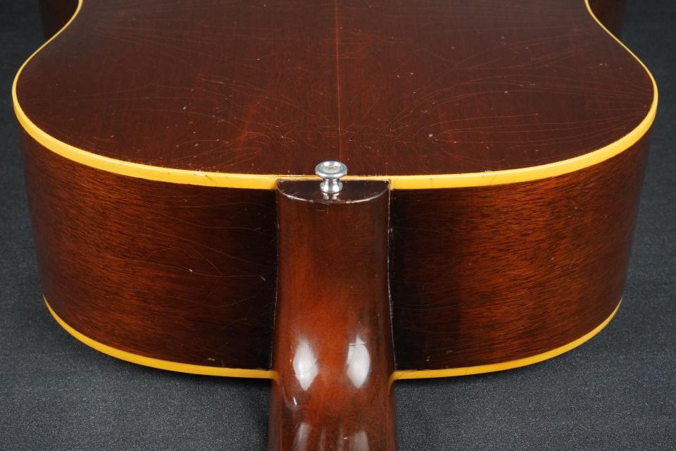 サイド&バックも、同じく経年で褪せたフィニッシュや、ポツポツと細かな傷や打コンは多めですが、こちらも嫌な感じの経年では無く、良い感じで年を経た風合いを持ち、マホガニーブラウンのカラーから透けて見えるマホガニーも良い感じの材が用いられております。