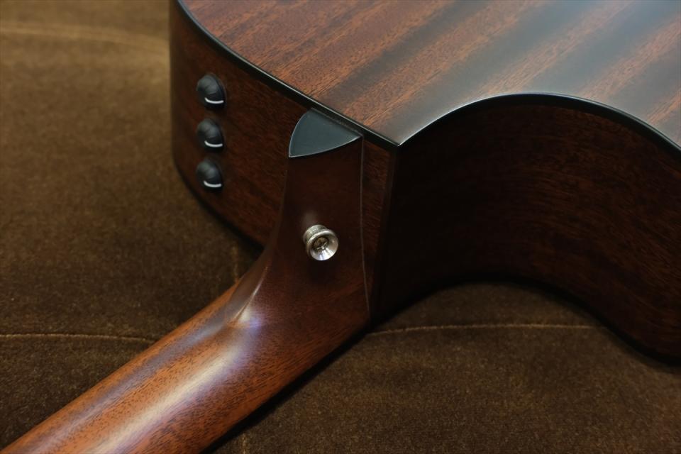 ジョイント部にはシムと呼ばれるサペリ材のスペーサーシムが入っており、コピー用紙一枚ほど違いほどの精密なレベルで厚さをコントロールされた最大24種類のシムを、ギター個体の状態により適したシムと交換することで、ネックセットアングルをミクロ単位で正確に短時間で調整することができます。2001年以降すべてのテイラーギターにはこの構造が採用されています。