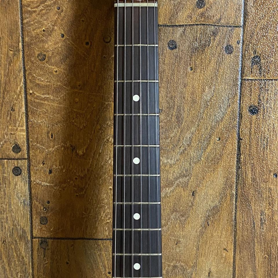 本機はトラッドなスペックに準じた強い指板Rにヴィンテージサイズのフレット。