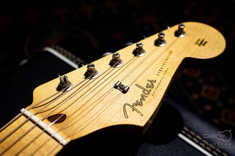 基本的にはローズ指板ですが今回入荷したモデルはメイプル指板、しかもストラトヘッドですね。