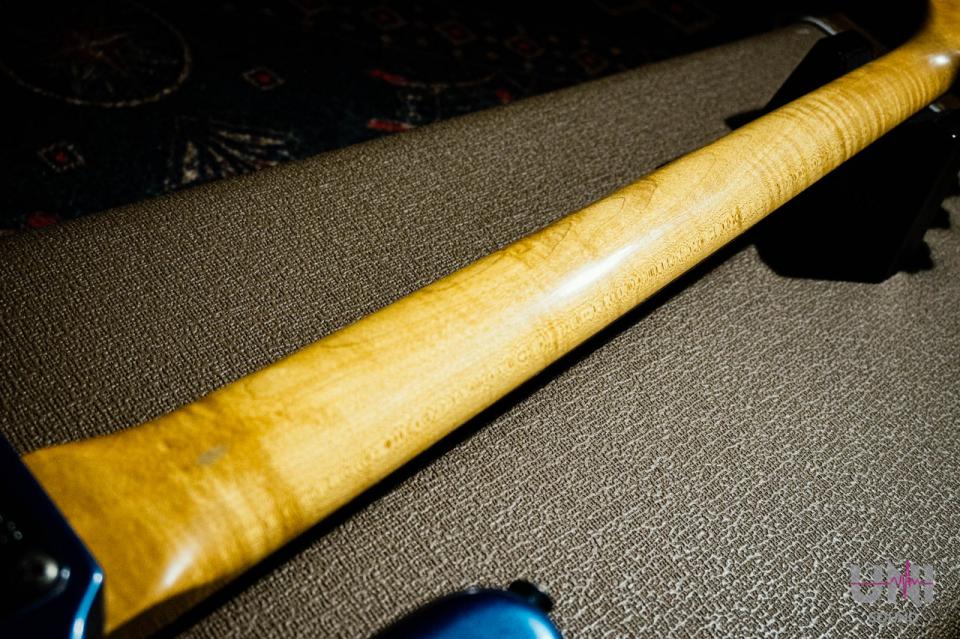 アルダーボディにメイプルネック、そして前述の通りのラウンド貼りローズ指板ですね。