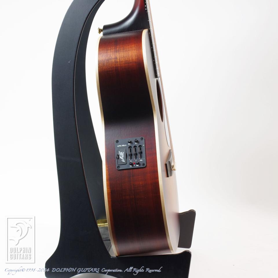 搭載されたAP5pro PUシステムは、オリジナルのアンダーサドルPUにコンデンサーマイクを併用する事により、奥行きのある音域と抜群なエアー感に加え、ボディーヒット音も余すことなくアウトプットします。また、高い出力を持つプリアンプを内蔵しておりますので、外部プリアンプ等を使用せずとも、そのままプラグインしていただければ極上のサウンドをお楽しみいただけます。PUとマイクVolは完全に独立しており、手元での出力バランス調整が可能ですのでお好みや現場に合わせてご使用下さい。