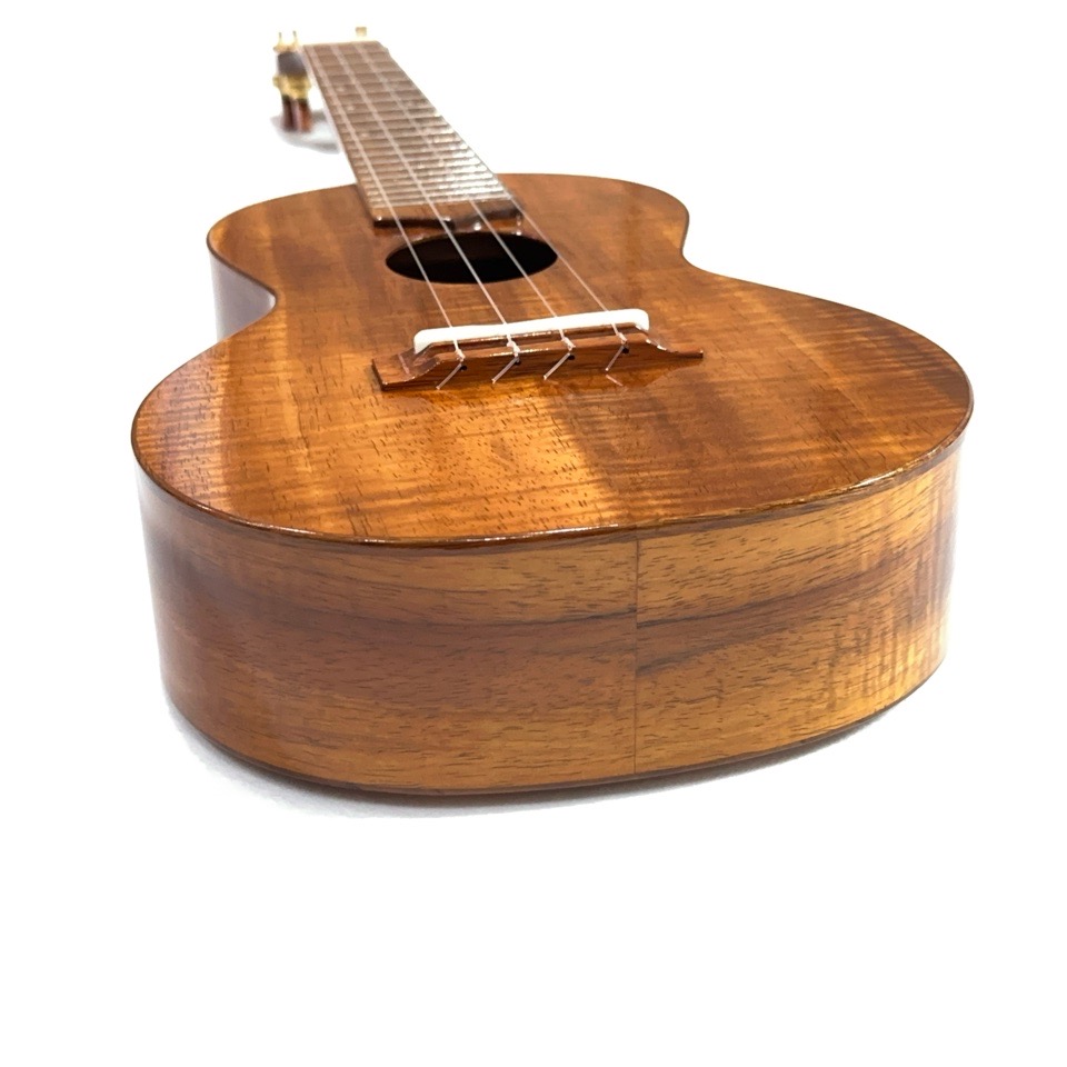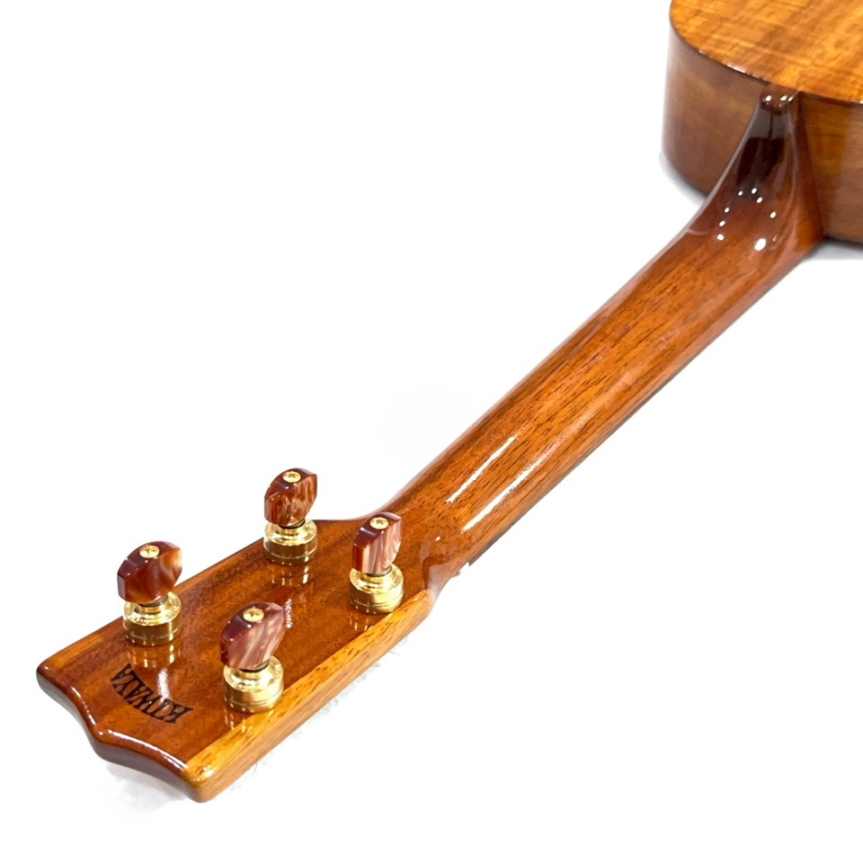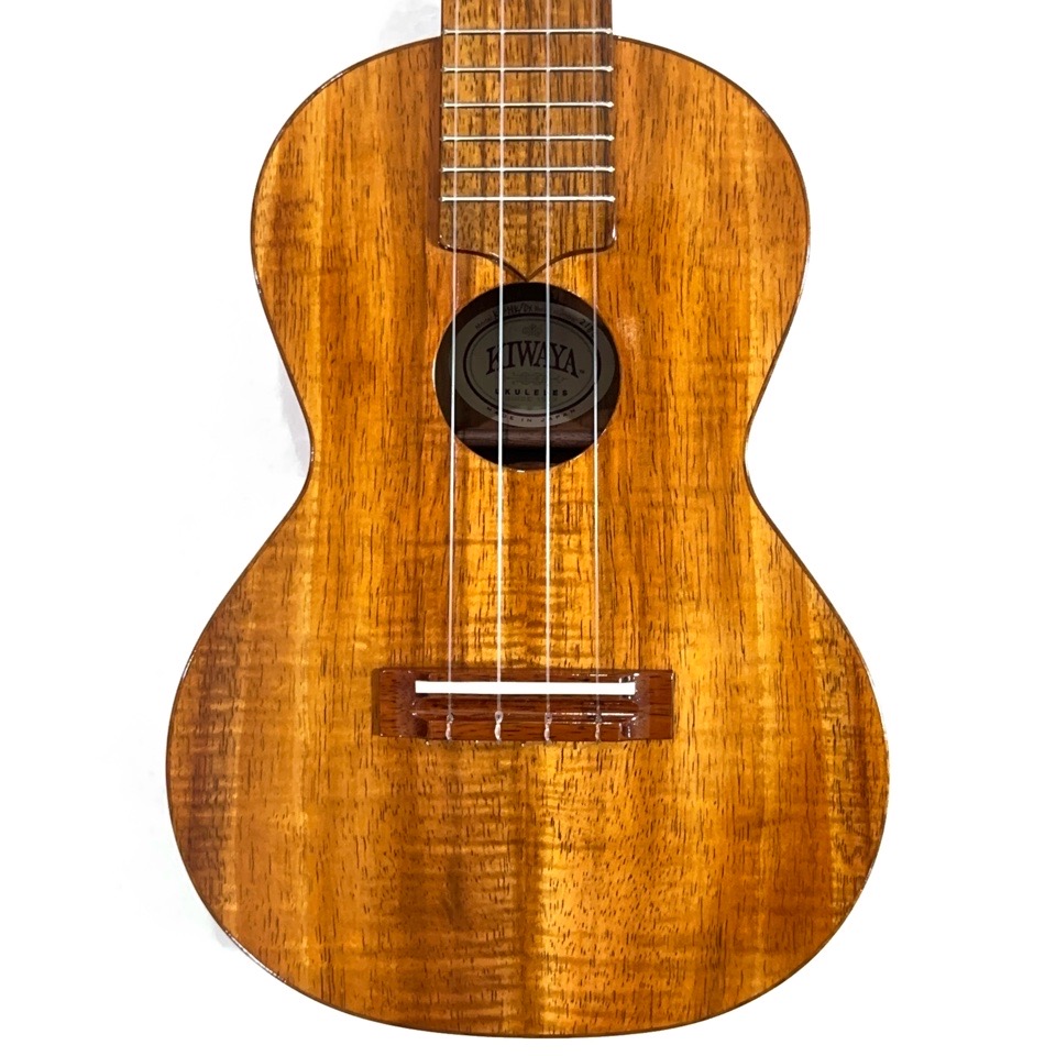 ボディを始め、指板・ブリッジ・ネック・ボディ内部のブレーシングに至るまで、全てのパーツにハワイアンコア材を使用したKIWAYAのオールハワイアンコアモデル。