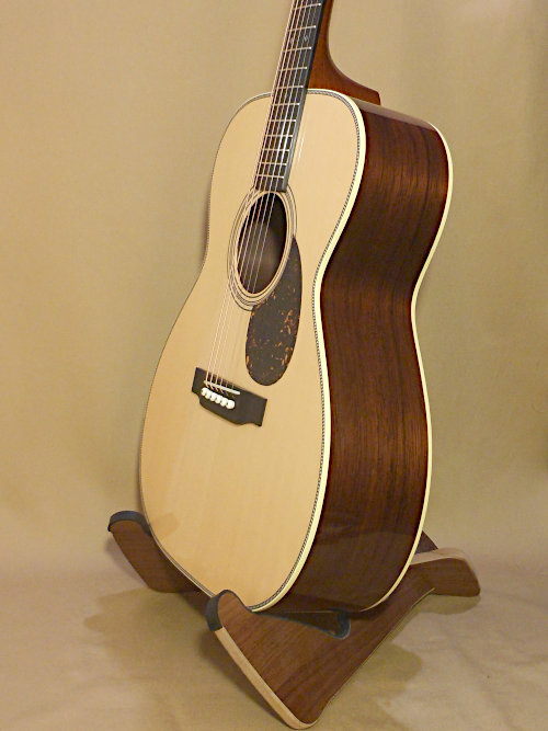 ヘッドウェイ、アスカチームビルドの職人により製作された2019年限定モデル。ヘリンボーントリムの同社伝統の115スタイル。抱えやすいOOOサイズのHFボディにドレッドノートに近い厚みを持たせ、648mmロングスケール仕様のHOMディープボディ。トップには長年シーズニングされたレッドスプルース、サイドとバックにはハカランダの特性に類似しているマダガスカルローズウッドを使用したハイスペックな一本。いずれも厳選された素材を用いており、とくにトップ材は緻密な木目が美しい個体です。トップブレイスには近年採用しているたARS(アドヴァンスト・リアシフト)の位置からホールよりに近づけたセミリアシフト仕様。レッドスプルーストップ、深胴ボディとのマッチングによりドレッドノートのようにパワフルで奥行のある響きとホールド感の良さを兼ね備えたギターです。硬質なサイド&バック材によるきらびやかな倍音感も美しいです。外観のコンディションはボディサイドに擦り傷、その他光の加減で見える細かな打痕や擦り傷はみられますが、全体的にはまだ新品を感じさせるきれいな状態と言えます。消耗部品の減りもわずかでネック状態も問題なく、演奏性も良好です。